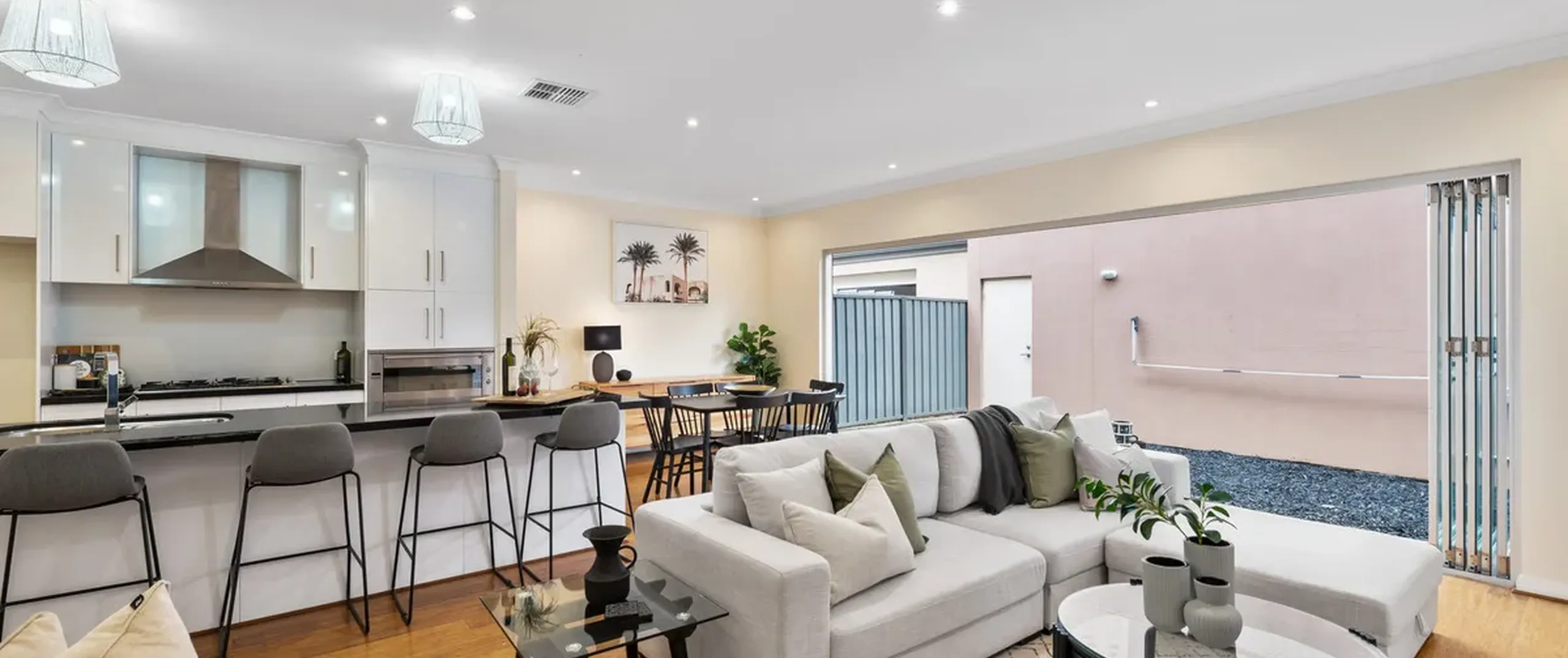 - Light-filled and open plan living/meals area with a wall of bi-fold doors