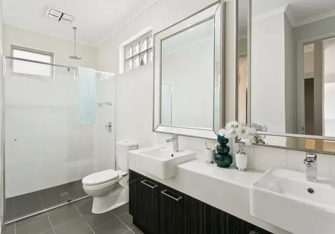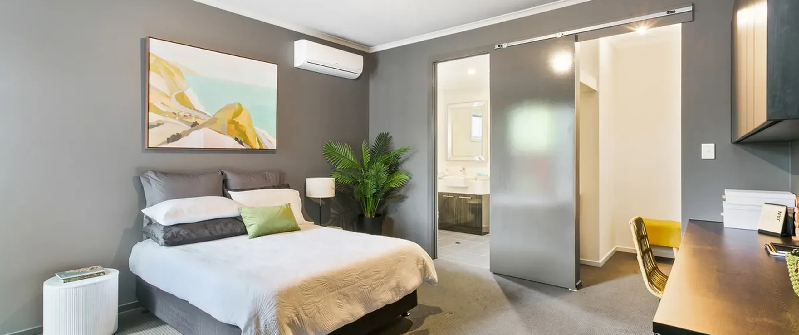 - Bedroom 1 with ensuite including double basins, a generous walk-in robe, split system air-conditioning and intercom access