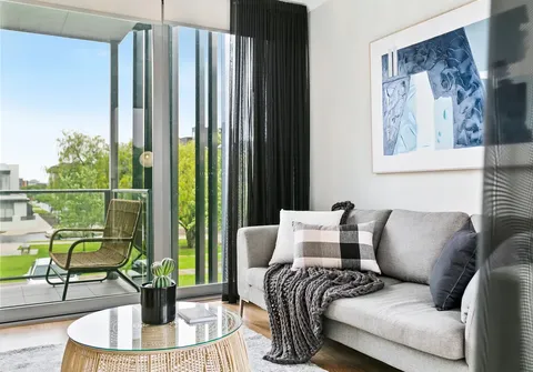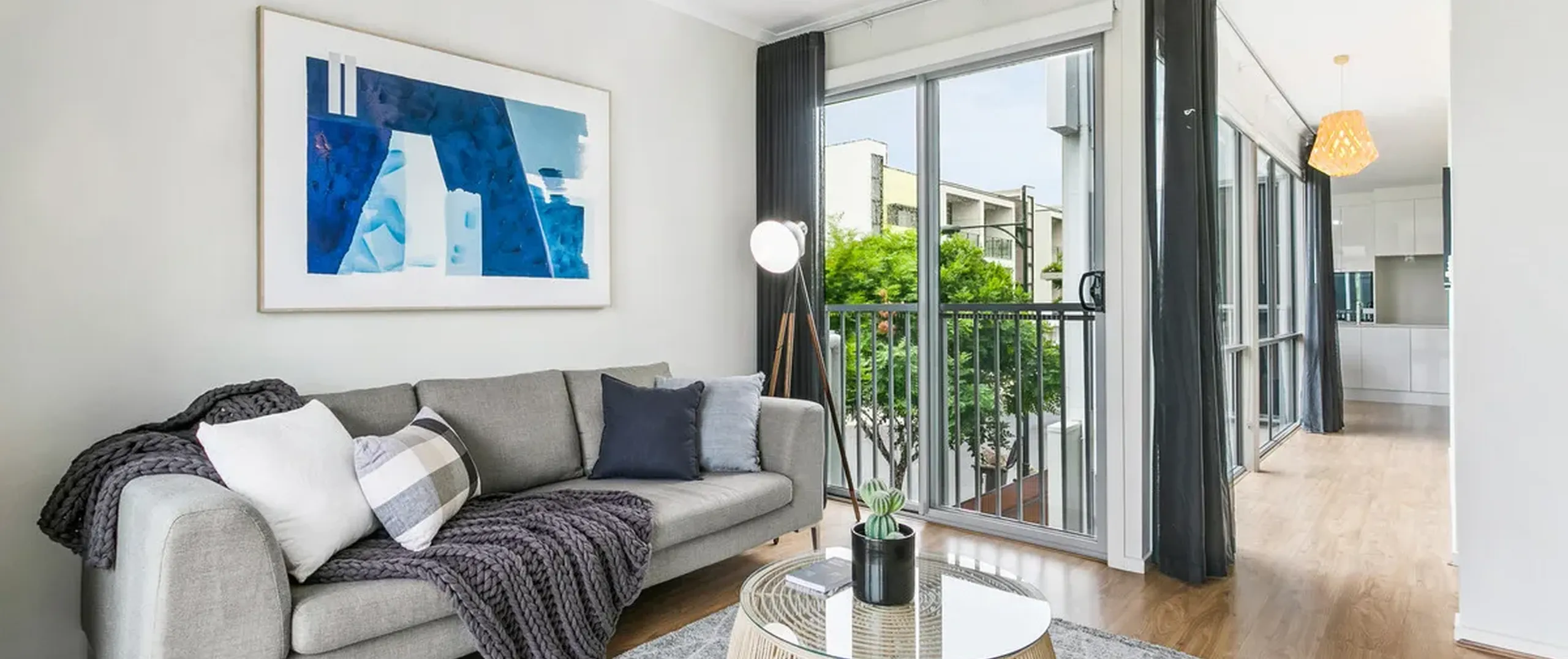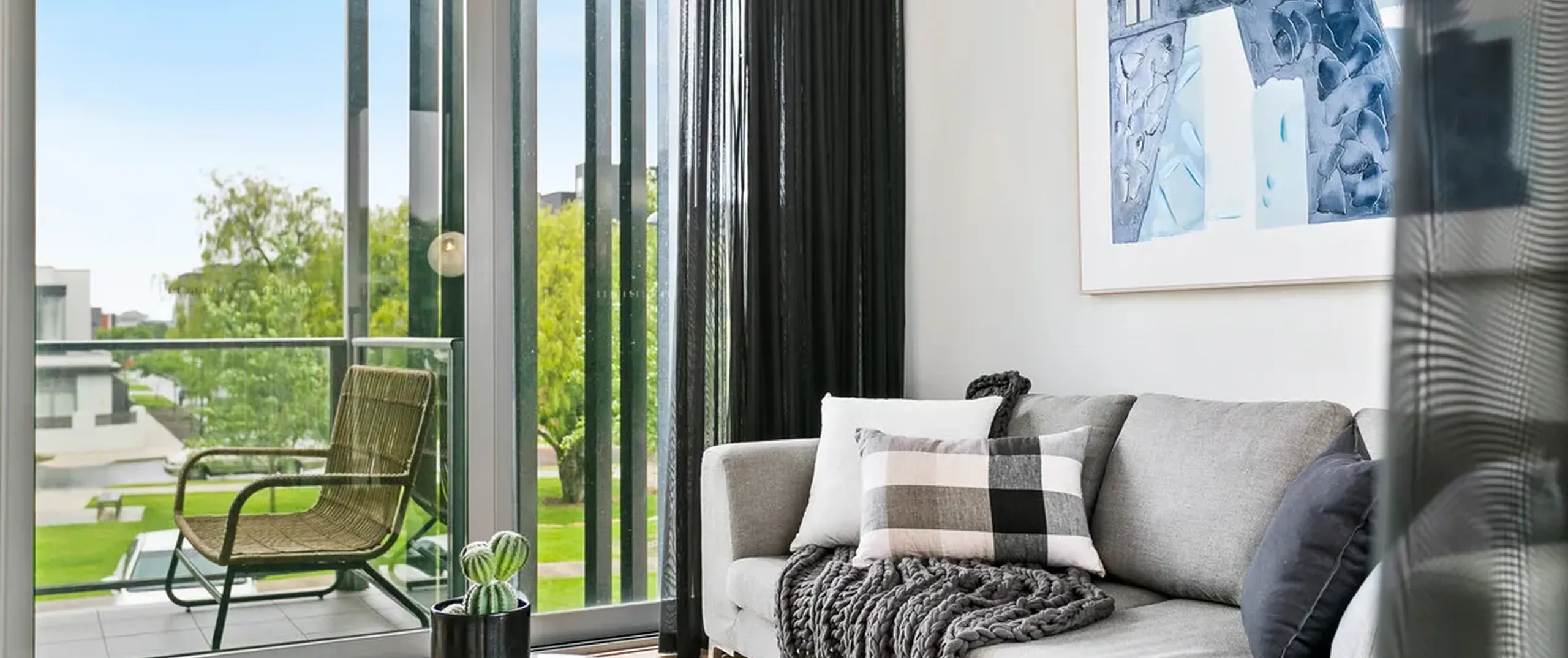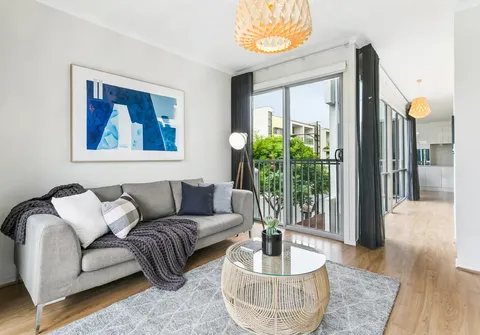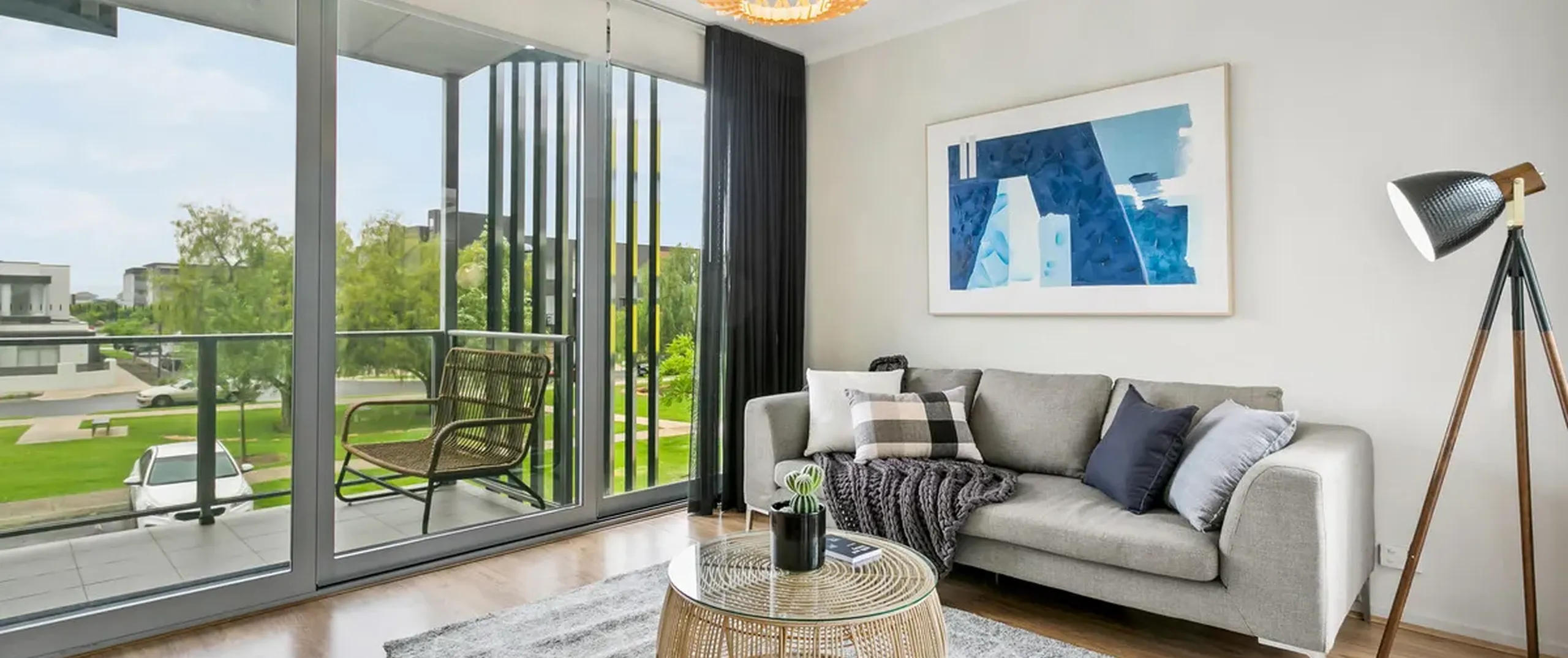- Light-filled lounge room with split system air conditioner and sliding door access to private balcony