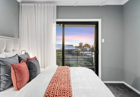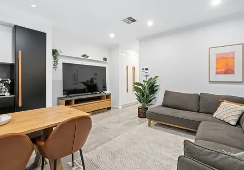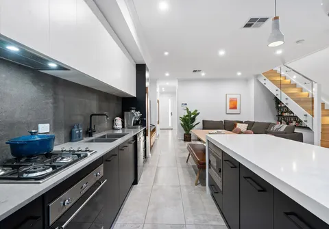 The living spans two levels with three bedrooms and two luxe bathrooms located upstairs. The plush master bedroom features a private balcony and exquisite ensuite. Downstairs, a warm and inviting lounge room is showcased on arrival which flows into the dining and living space which are centered around the exquisite kitchen, offering the flexibility modern families need.