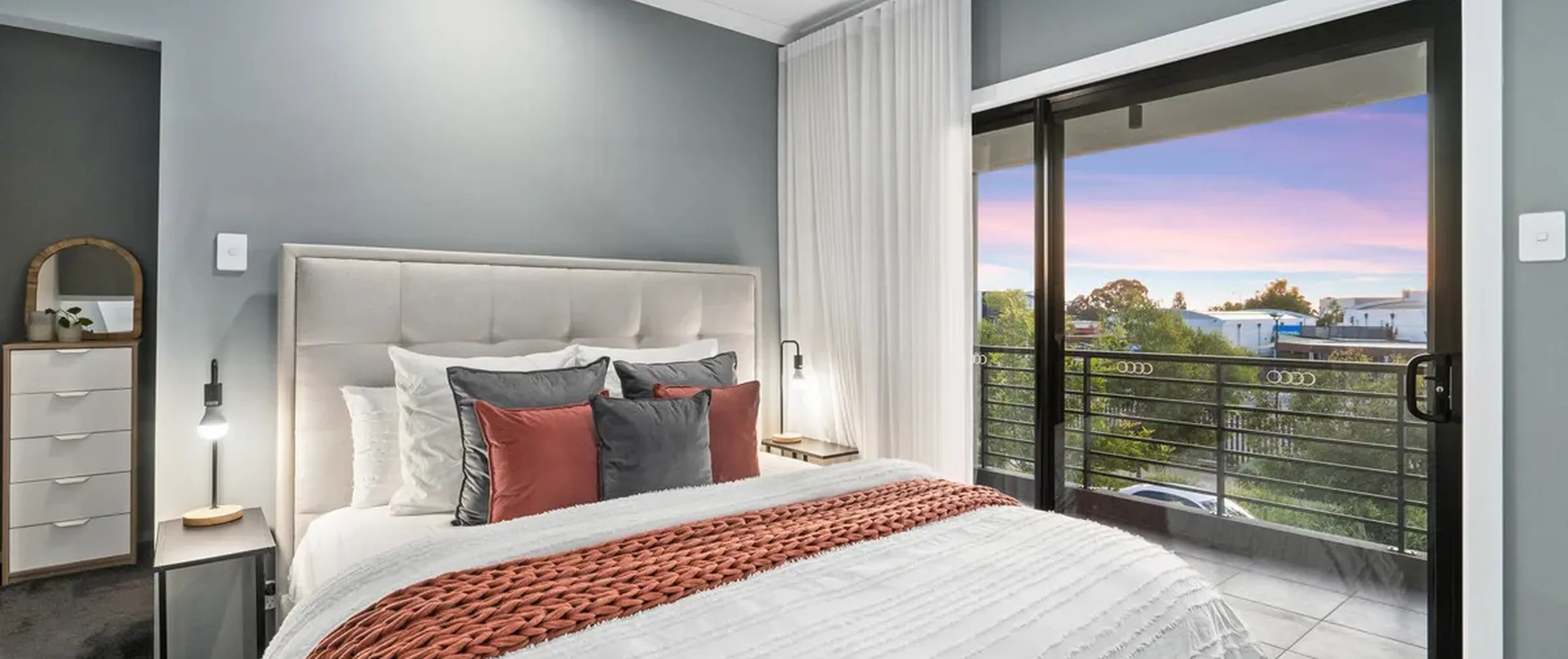 - Luxe master bedroom with ceiling fan, walk-in robe, ensuite and over-sized private balcony