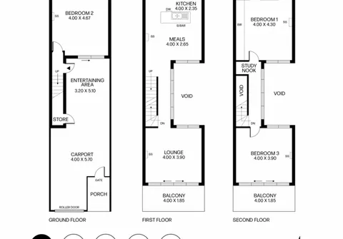 The middle level contains a light-filled open and airy kitchen, living and meals area flowing seamlessly to the private balcony, where you can unwind with a good book in hand. You can choose to relax or host loved ones in the intimate entertaining area on the ground floor, while a secure carport completes the layout.