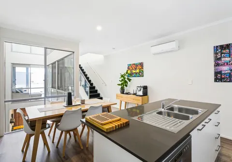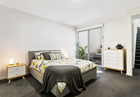 The floorplan spans conveniently across three levels boasting three bedrooms and three bathrooms. A master suite is comfortably set on the upper level and complete with a built-in robe, air-conditioning and a well-appointed ensuite. Completing the upper level is a guest bedroom with its very own private balcony and a study nook. A secondary master bedroom is located on the ground level, fully equipped with its own private ensuite, walk-in robe and air-conditioning.