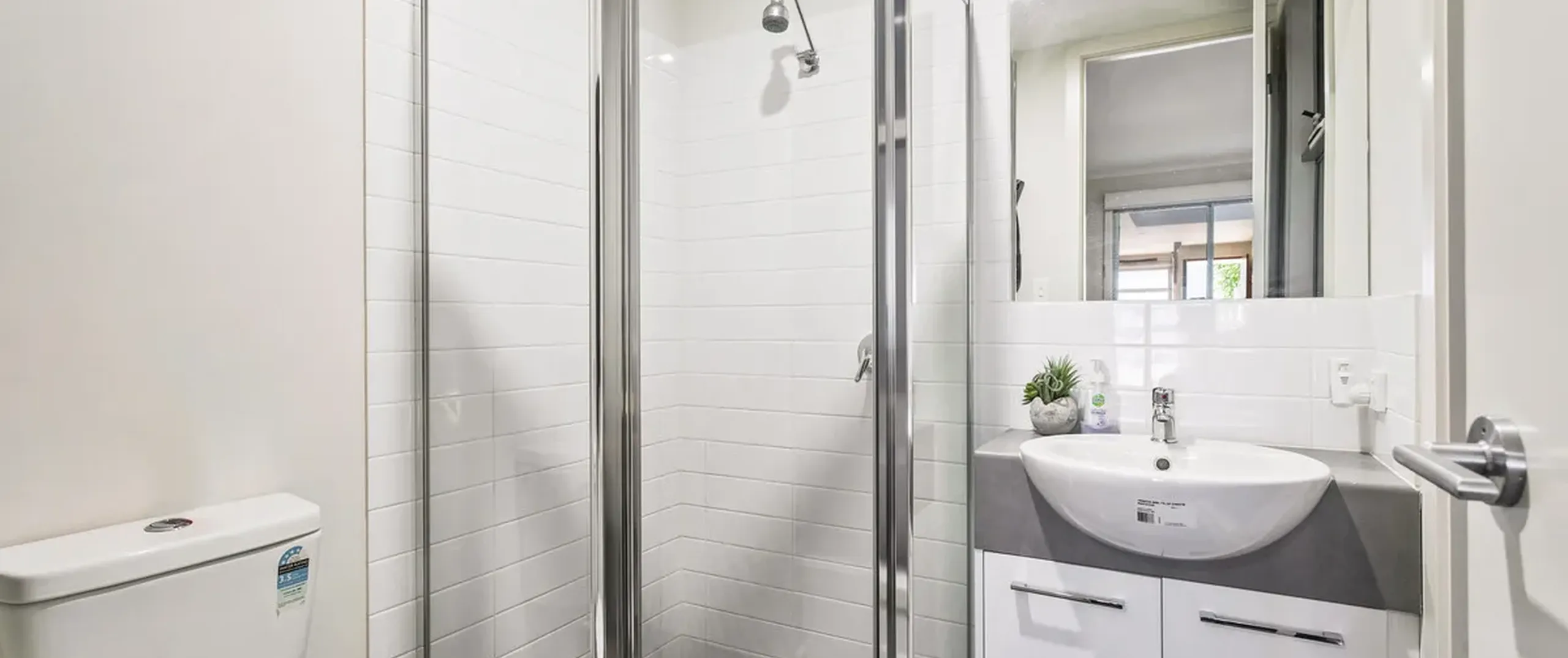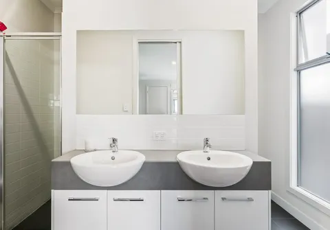 - Generous bedroom one with wall-length built-in robe and contemporary ensuite with his and hers basins and complete with split system air-conditioner