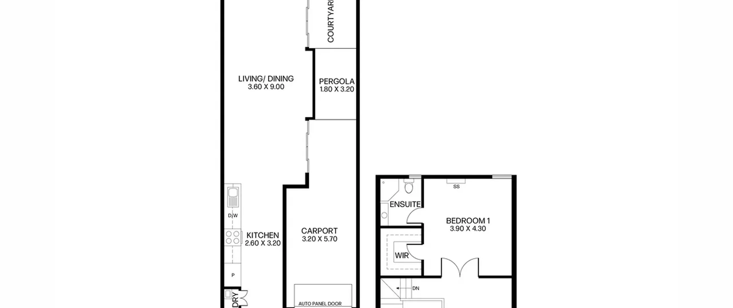 - Single carport with automatic panel lift door with direct access to the outdoor area
