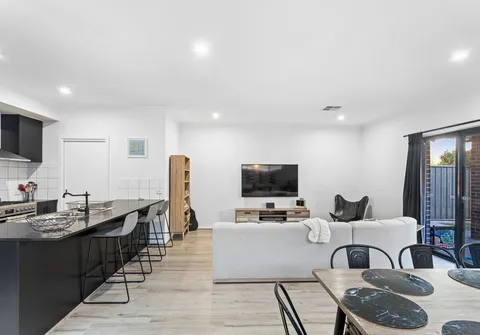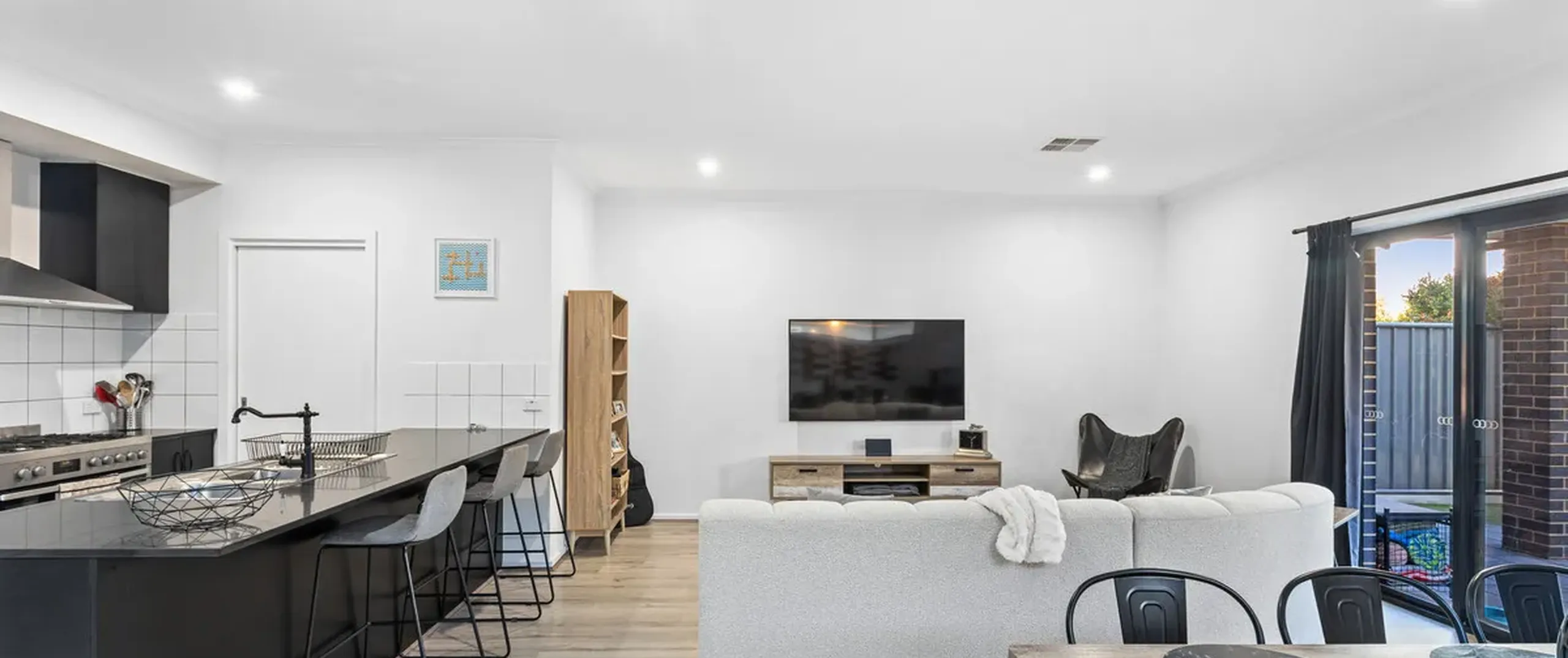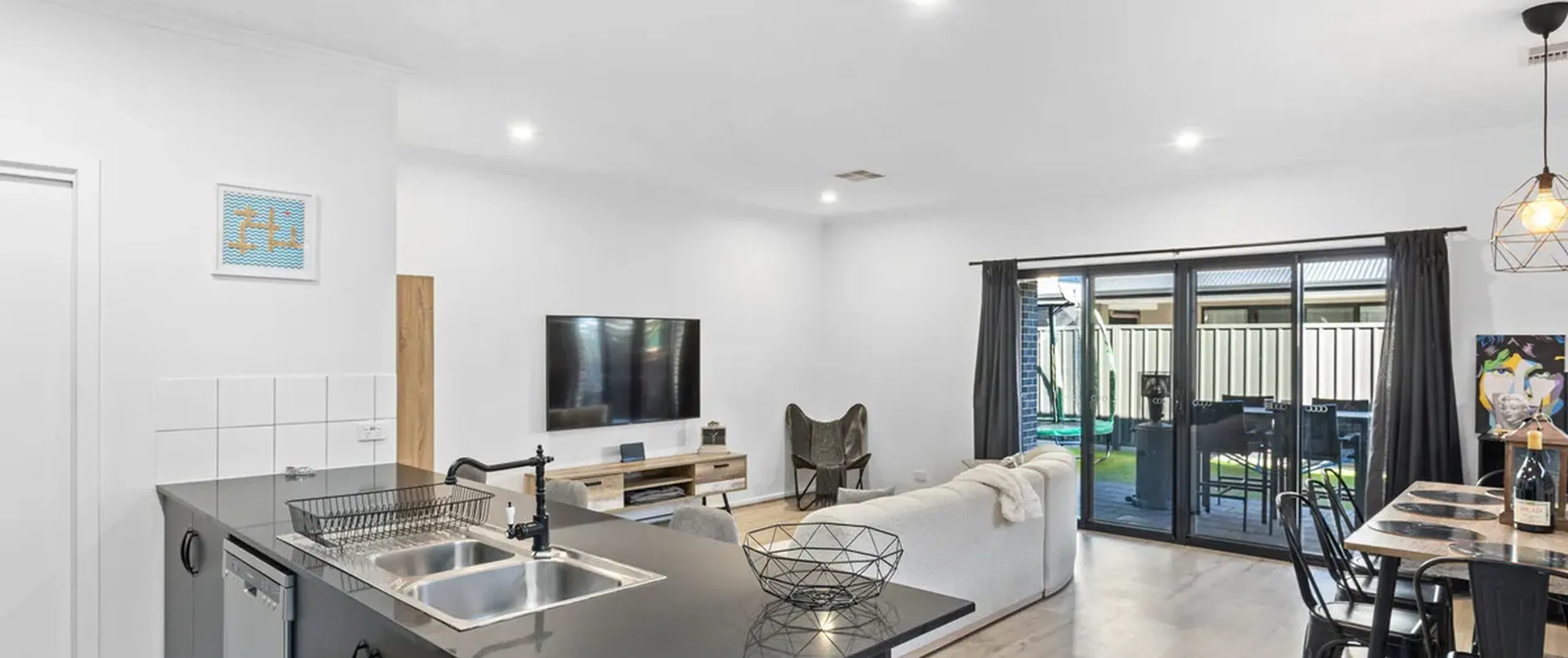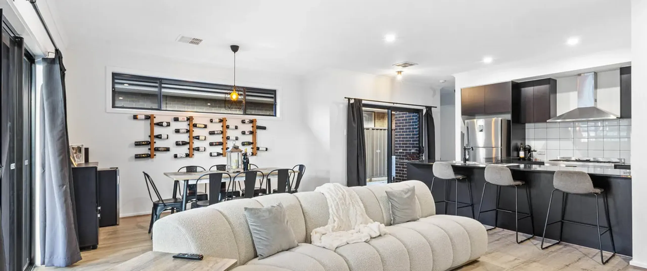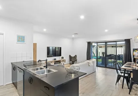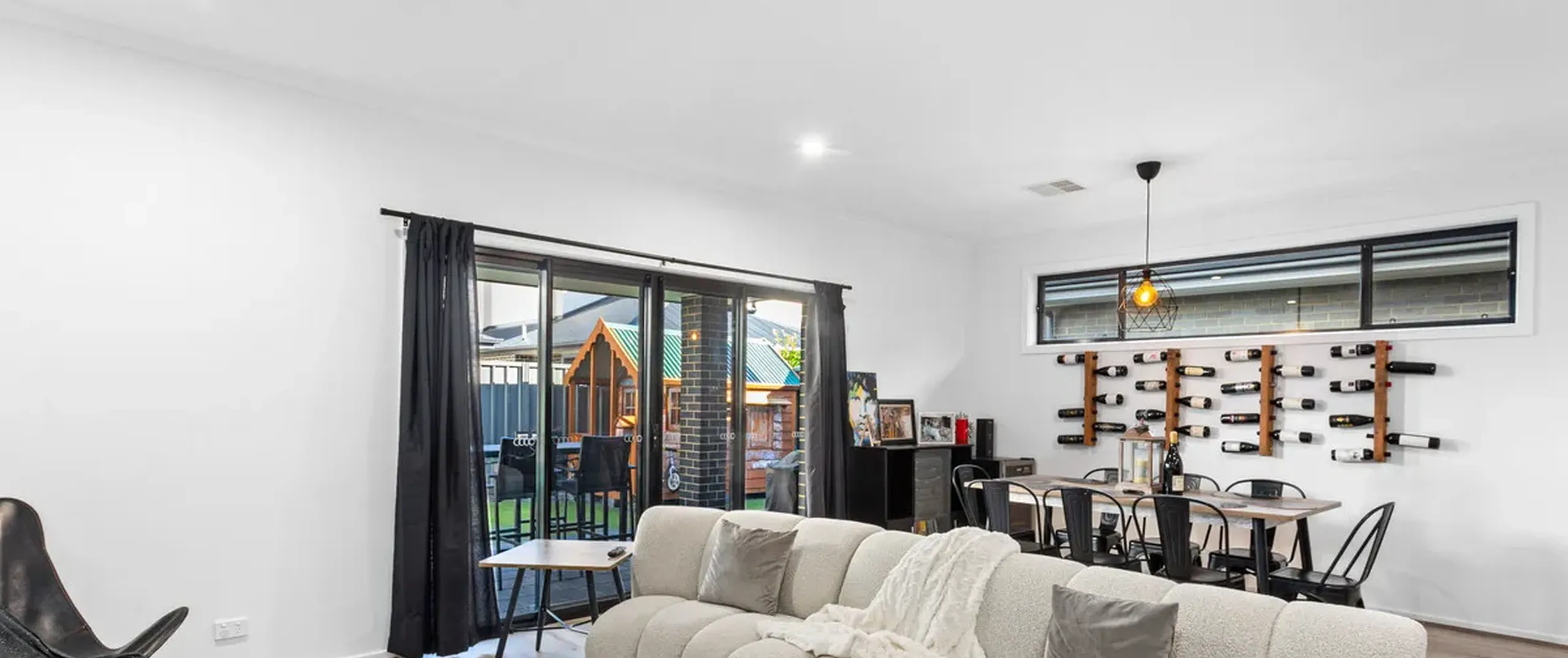 - Warm and inviting open-plan living and dining area with sliding door access to the alfresco, creating a seamless blend of indoor-outdoor living