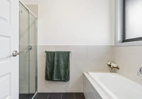 - Contemporary three-way bathroom with bath, shower and separate toilet for added convenience