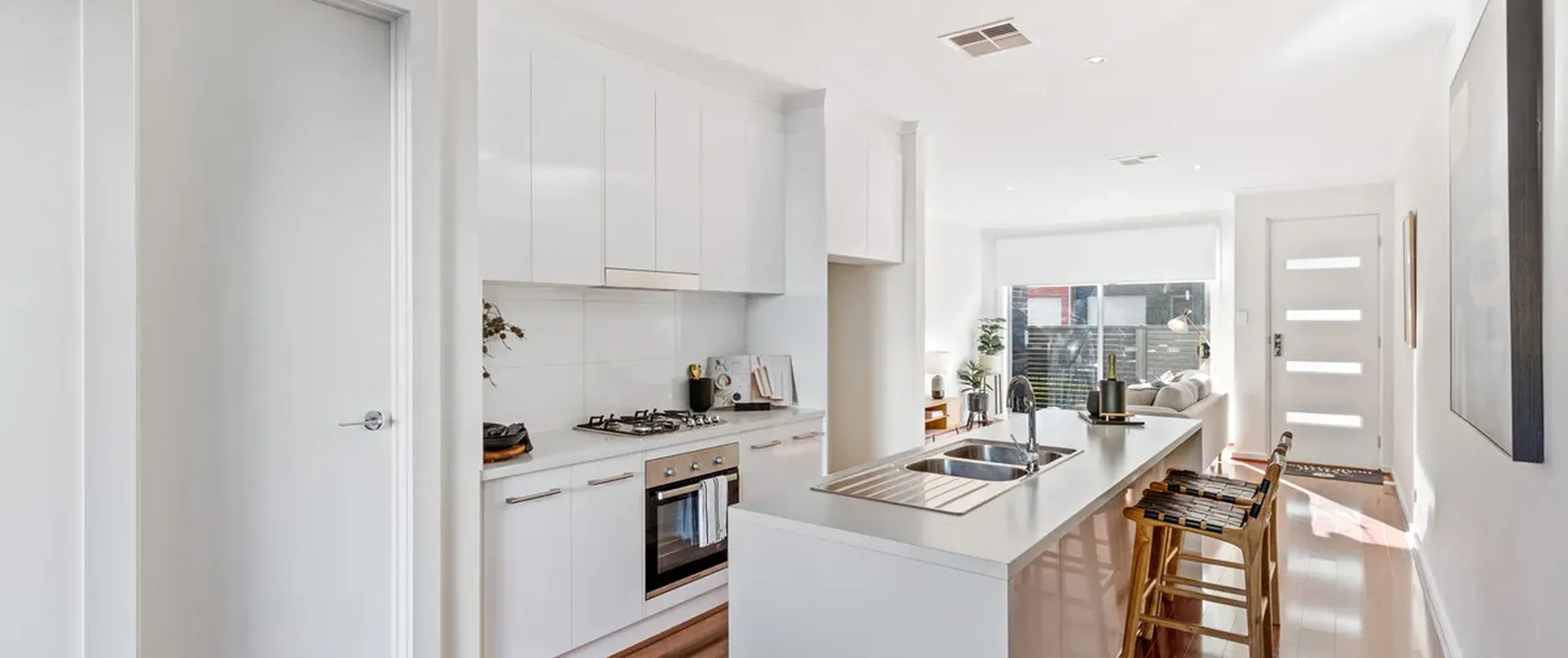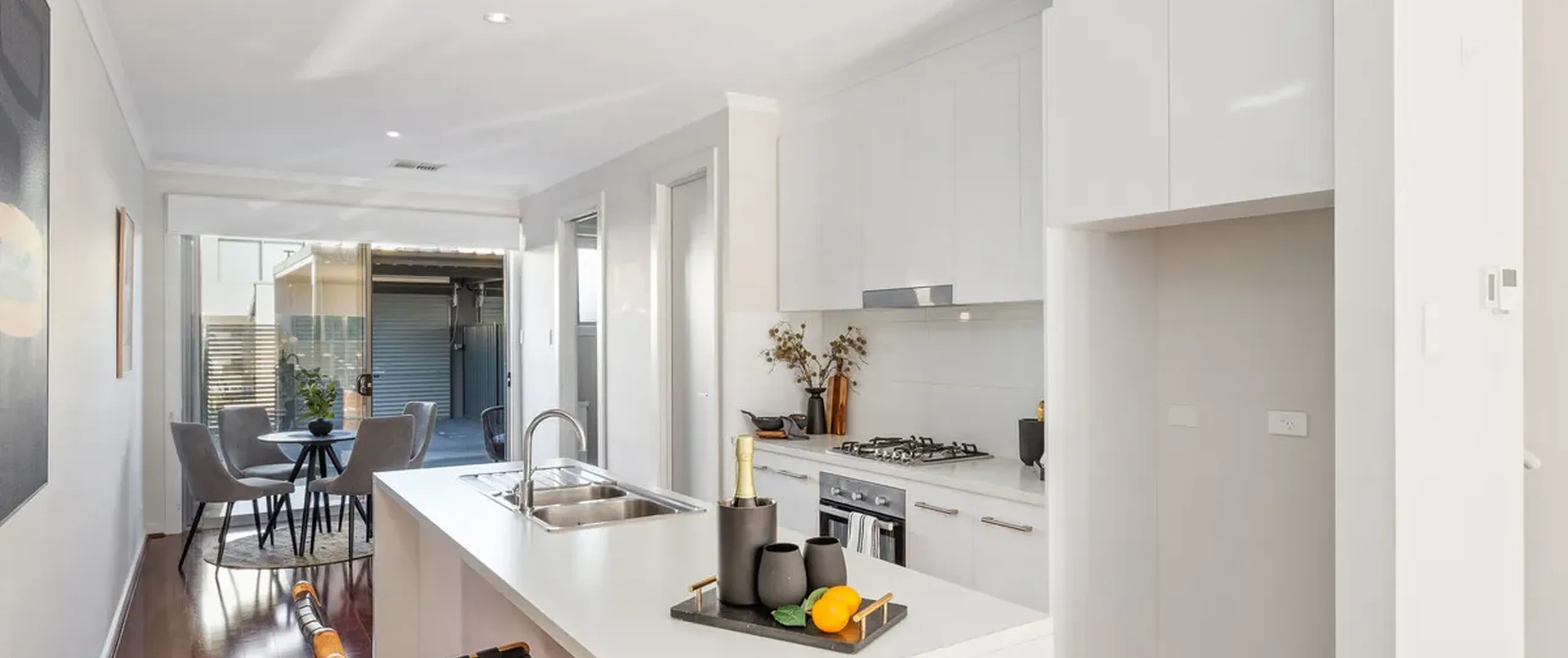 - Light-filled open plan lounge, kitchen and meals area with glass sliding doors leading out to the alfresco area and courtyard