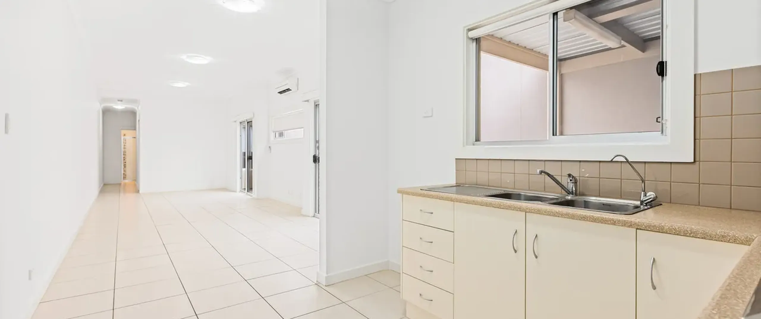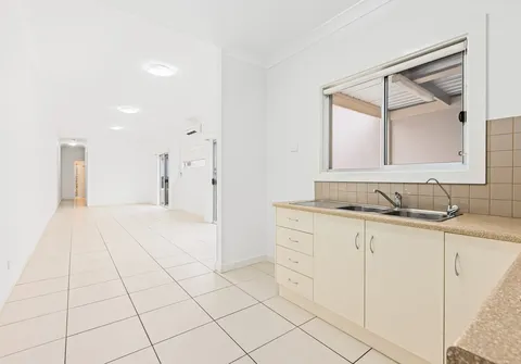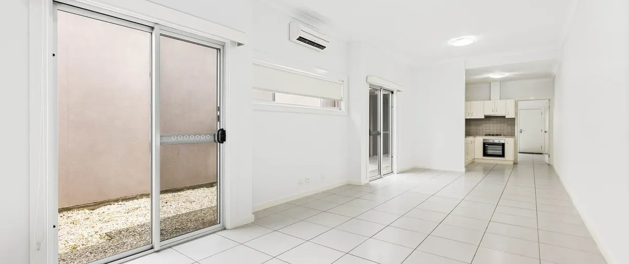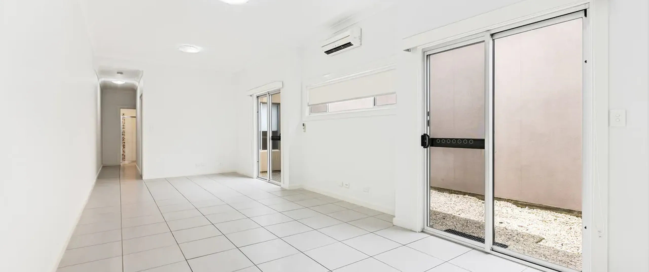- Open plan living and meals area with split system air conditioner and sliding door access to the courtyard