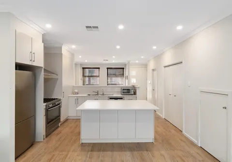 - Contemporary kitchen with stainless steel dishwasher, oven and gas cooktop with ample storage and a generous island bench with breakfast bar