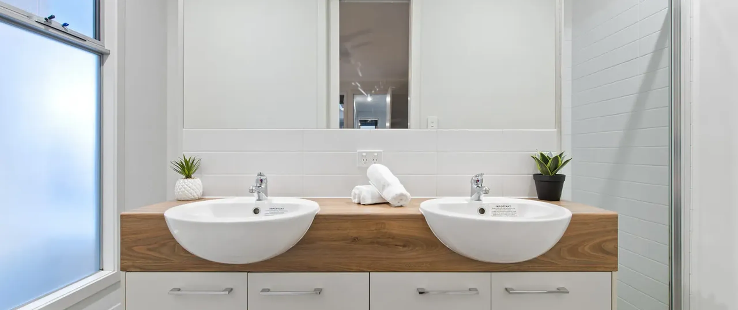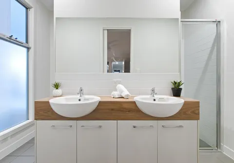 - Bedroom 1 with built-in robe, ceiling fan, split system air-conditioning and ensuite with his and hers basins