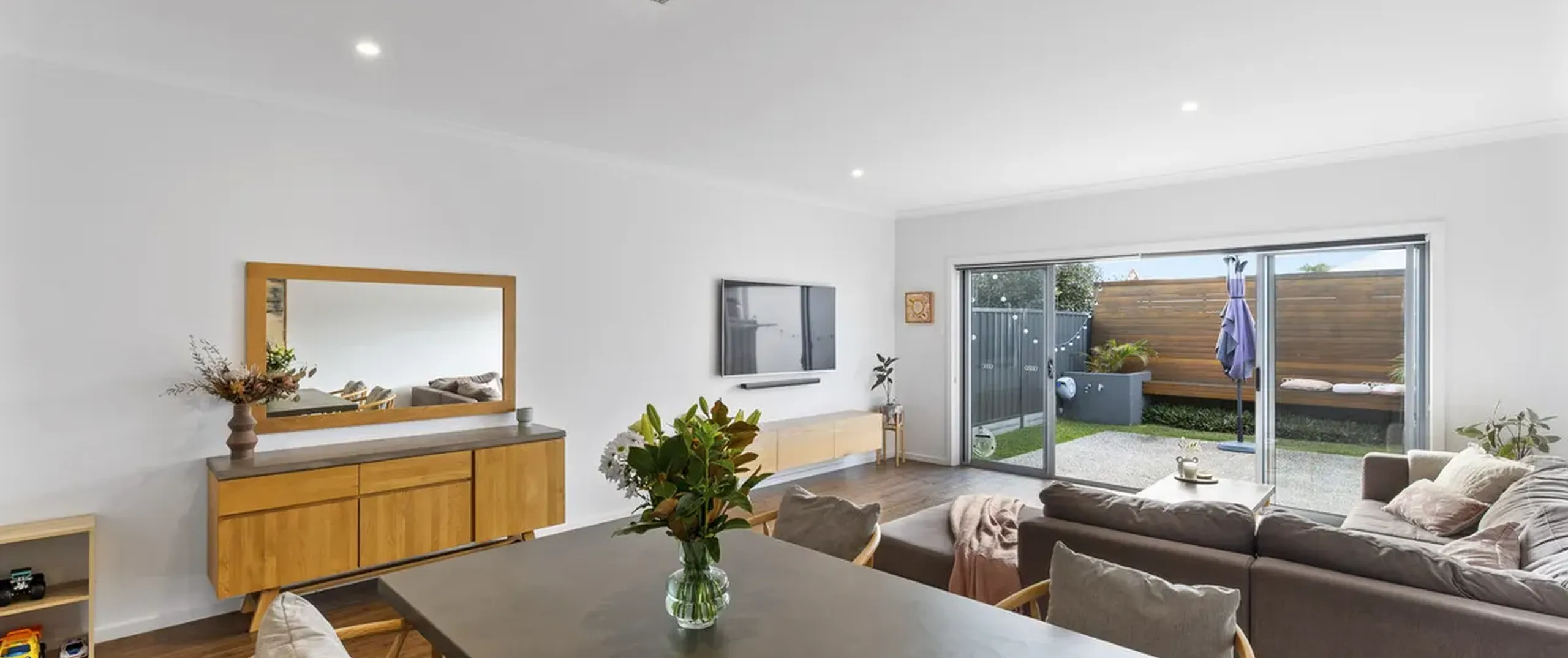 - Spacious open-plan living/meals with sliding door leading outside offering a seamless flow between spaces