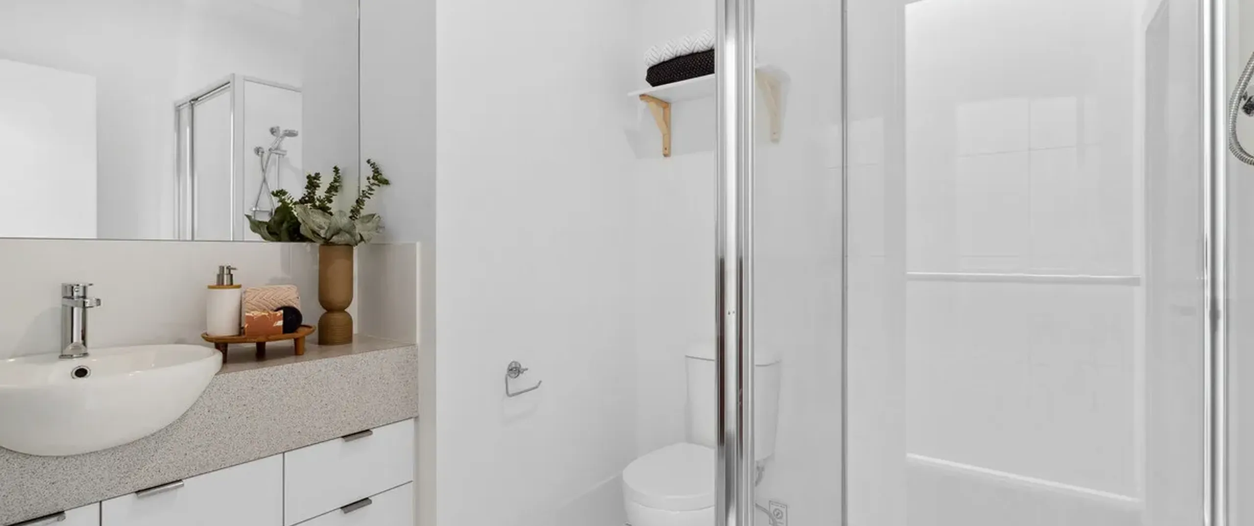 - Master bedroom with built-in robe, split-system air-conditioner, ceiling fan and ensuite