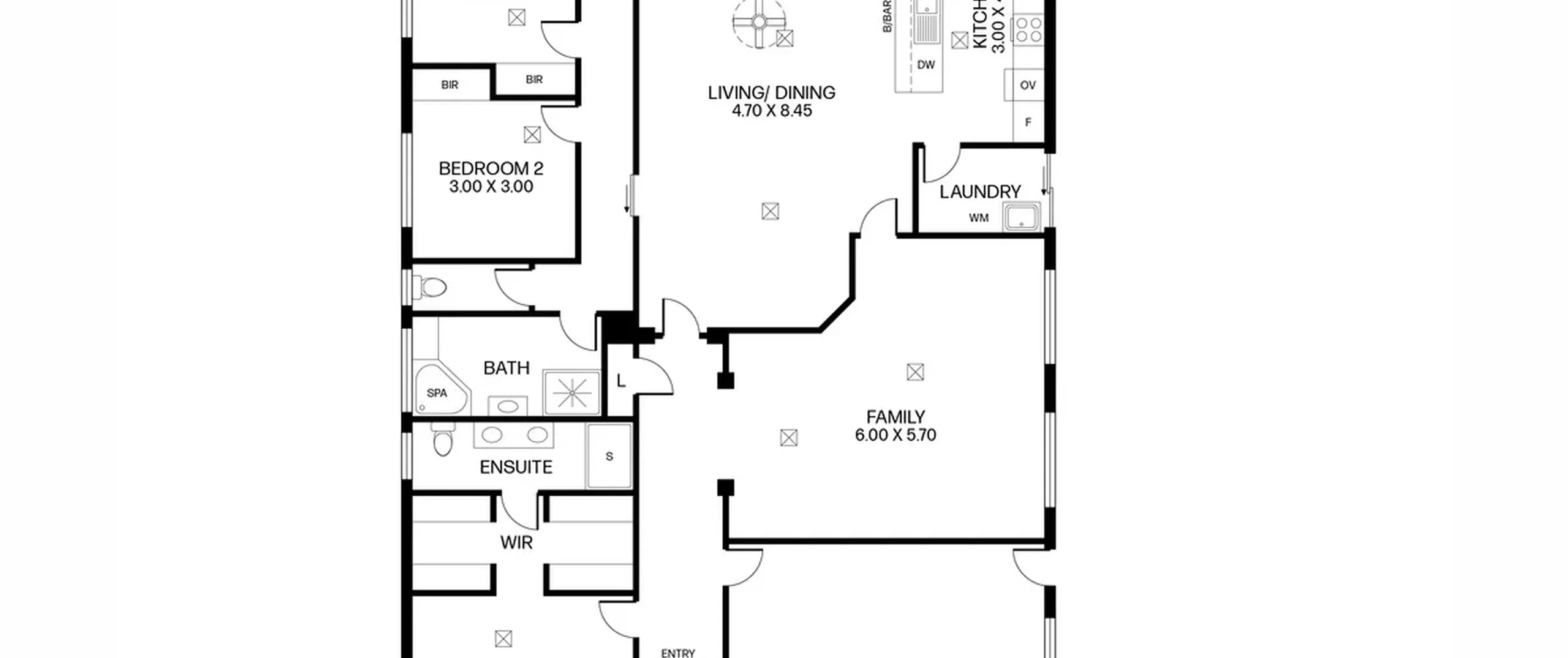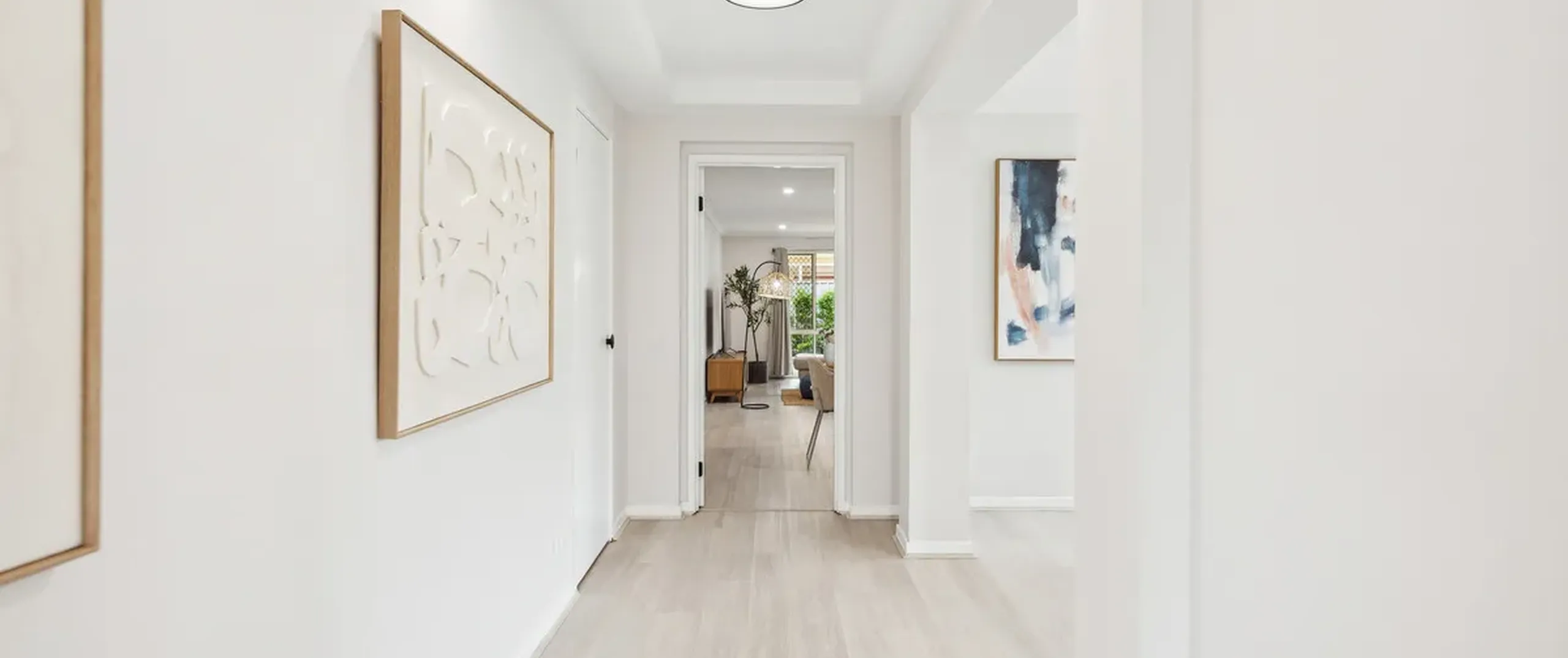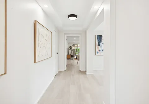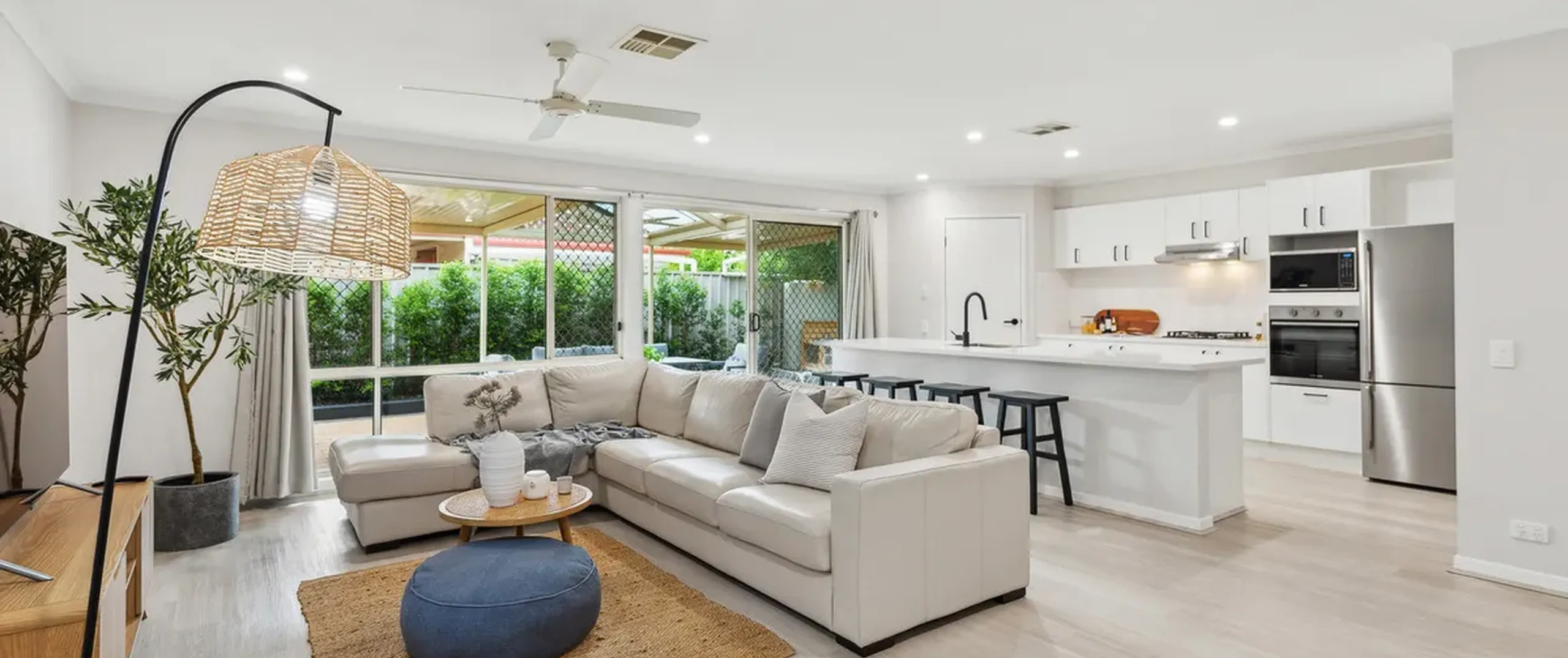 As you enter, the recessed ceiling entryway invites you into a home with freshly painted walls, updated neutral flooring, on-trend lighting, and energy-efficient LED downlights. From here, unwind in the spacious family room or transition into the heart of the home— the open living, dining, and kitchen area.