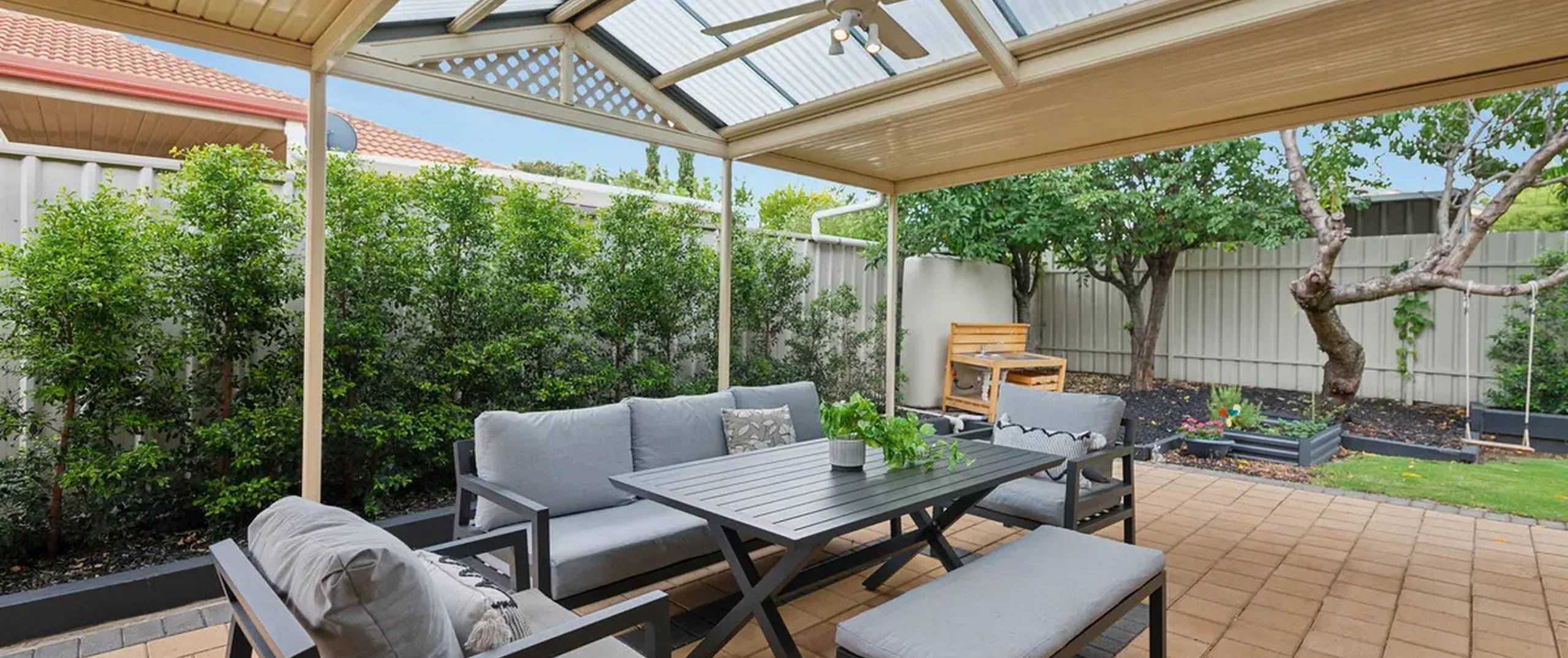 - Large paved outdoor entertaining area with pitched-roof pergola, gas provision and ceiling fan, providing ample space to entertain or dine outdoors