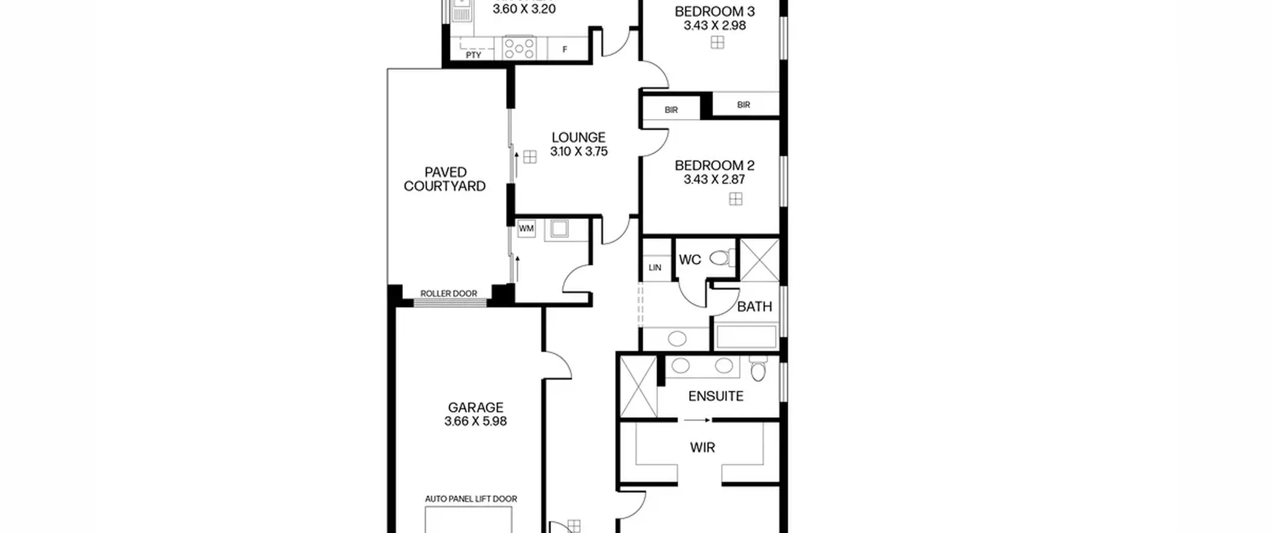 - Single garage with epoxy flooring, automatic panel lift door, roller door access to paved courtyard and internal hallway access