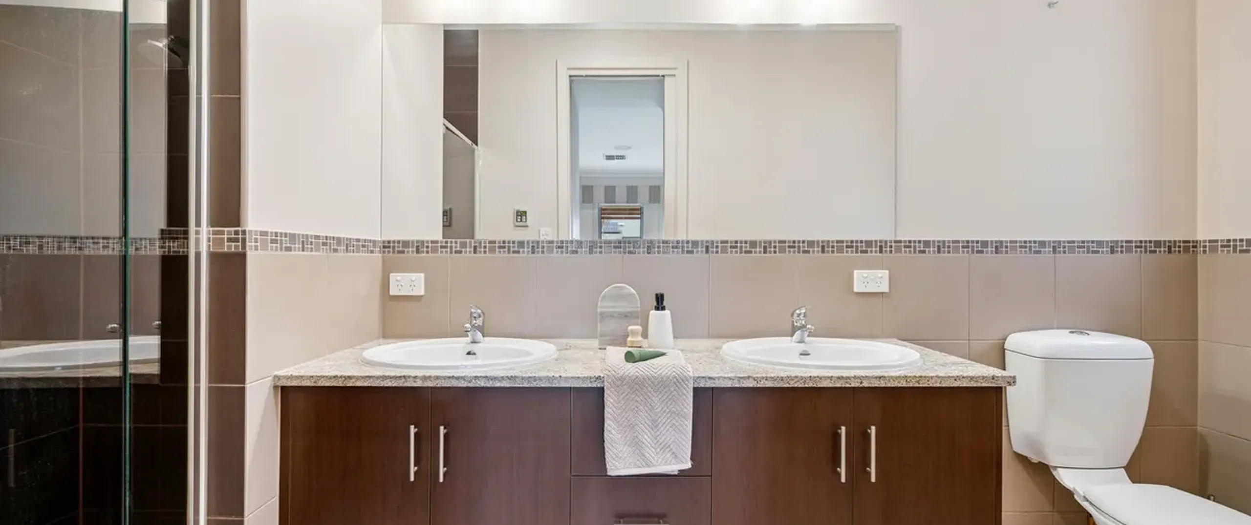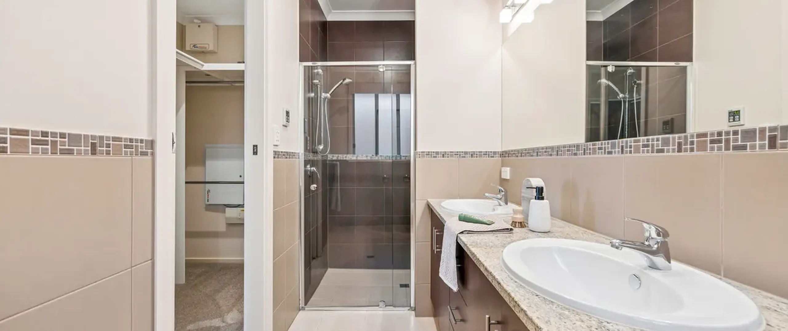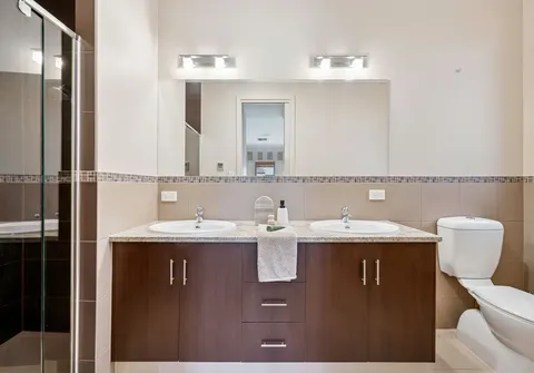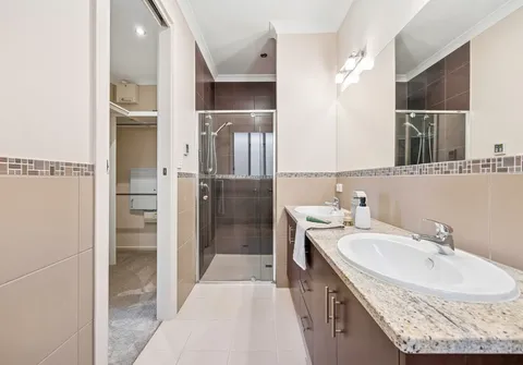 - Impressive master suite with plush carpet, spacious his and hers walk-in robe and generous private ensuite with dual basins, granite countertop, toilet and oversized shower