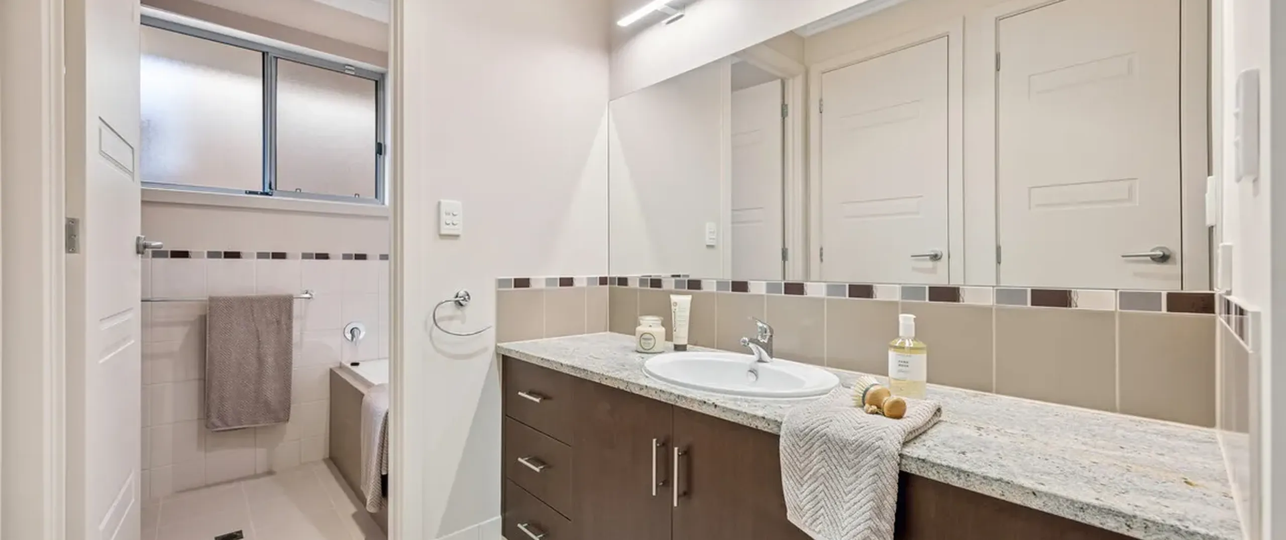 - Convenient three-way main bathroom with powder room, separate bath and shower and separate toilet