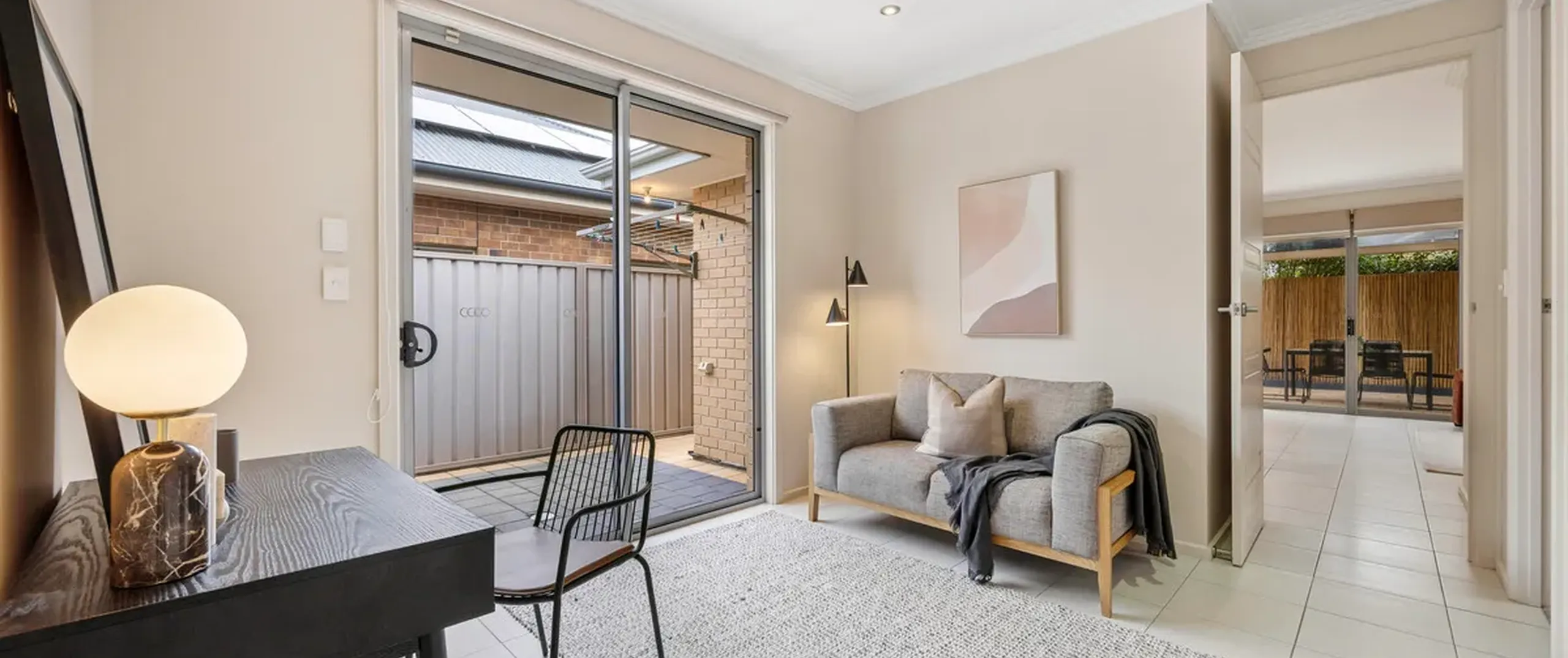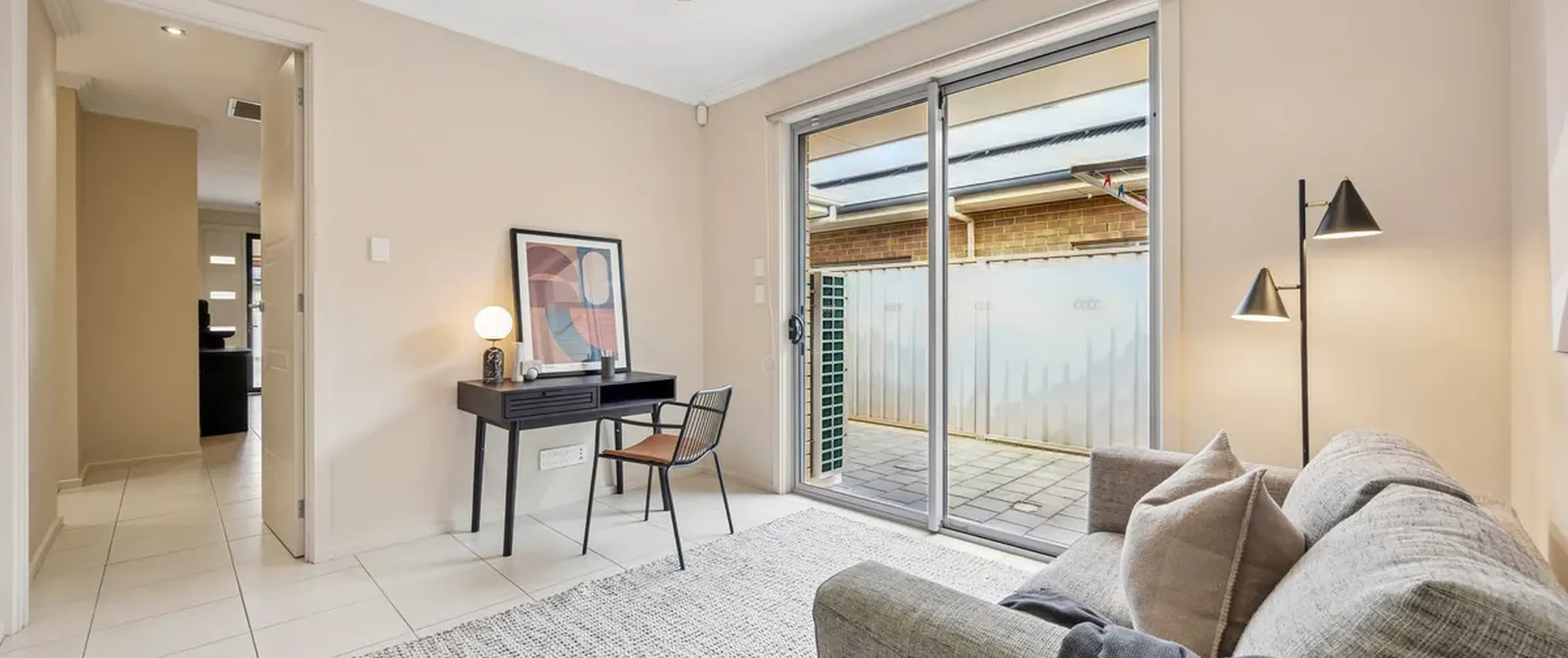 - Separate formal living to the front of the home with sliding glass door access to paved courtyard, also suitable for use as a home office with ethernet connectivity