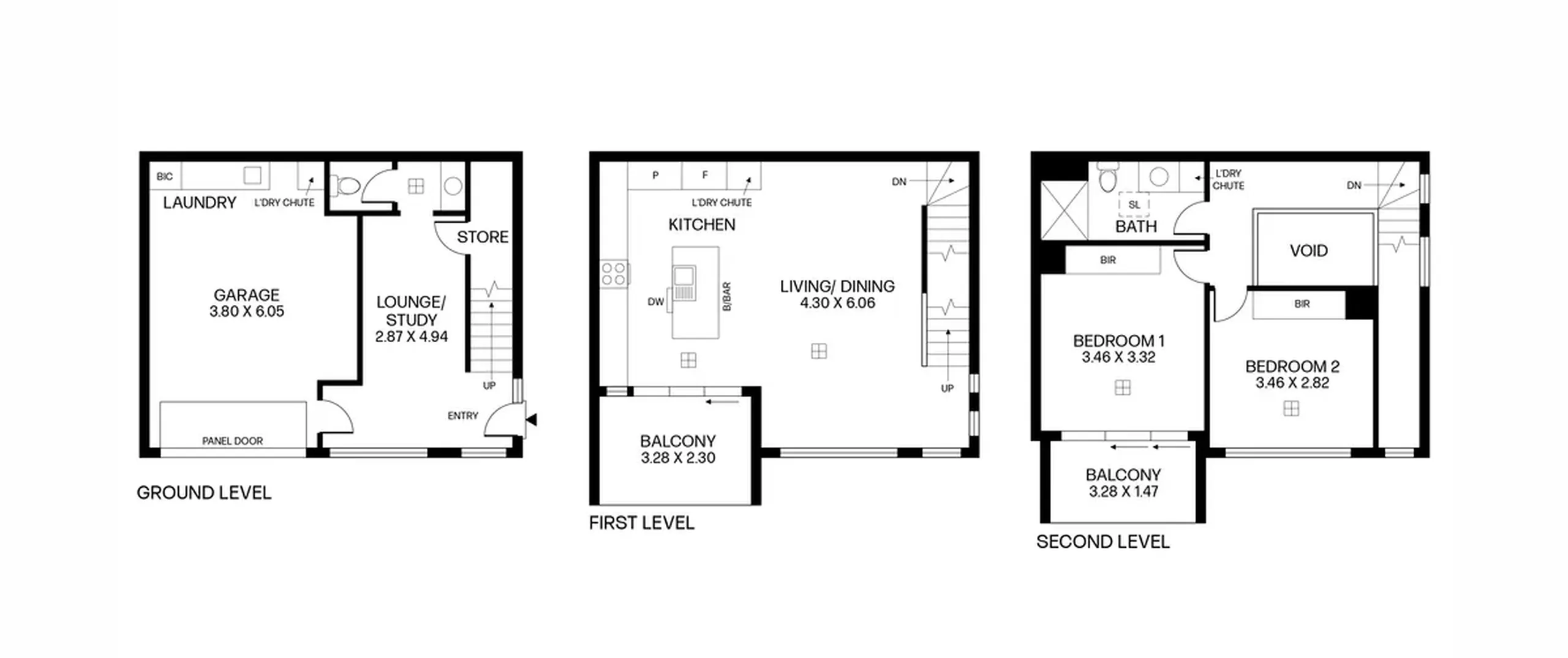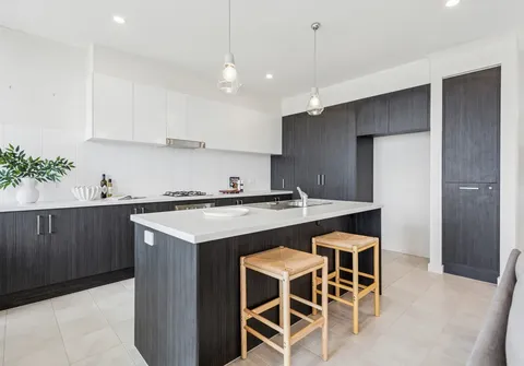 The heart of the home is the first level, where a practical yet elegant kitchen flows seamlessly into dining and living areas. With quality stainless-steel appliances and an island breakfast bar, this space is ideal for casual dining or hosting friends. Timber-look flooring, LED downlights, and reverse cycle air-conditioning ensure comfort and style, while a void connecting the first and second levels enhances the airy, expansive feel.