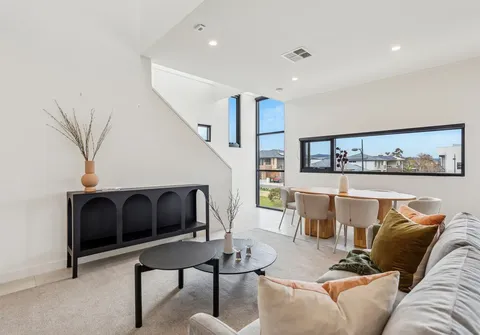 Designed for modern living and positioned on a corner, this architecturally designed three-level residence in Lightsview offers light-filled spaces and a sense of openness that perfectly suits family life, entertaining, or relaxed weekends at home. Balconies on multiple levels provide private outdoor retreats, while high-quality finishes throughout create a sense of luxury.