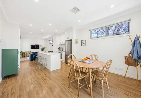 High ceilings throughout the property enhance the sense of space, while ducted reverse cycle air conditioning and a 1.5 kW solar system provide year-round efficiency. A powder room on the ground level, alarm system, and ample storage throughout the property are practical inclusions. The double garage with two further off-street parking spaces offers additional convenience.