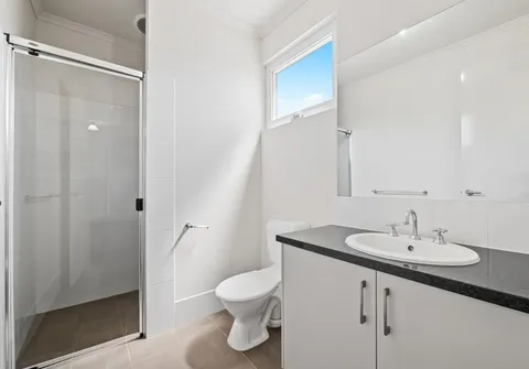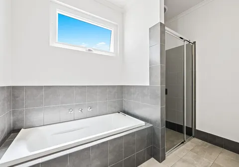 Follow the light upstairs to three bedrooms and an easy-access bathroom equipped with a bath and separate shower. The main bedroom also provides a built-in robe for plenty of storage.