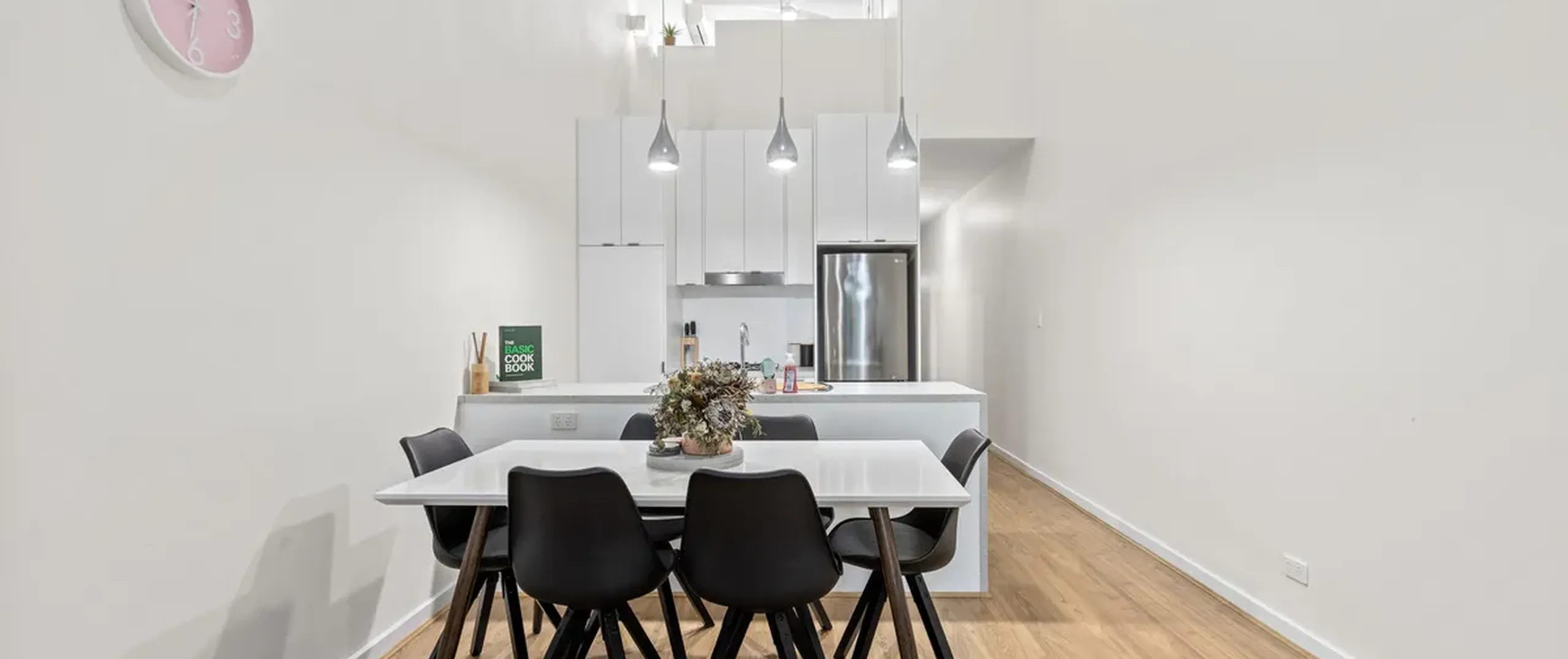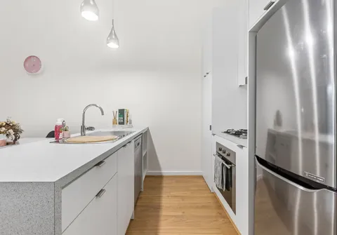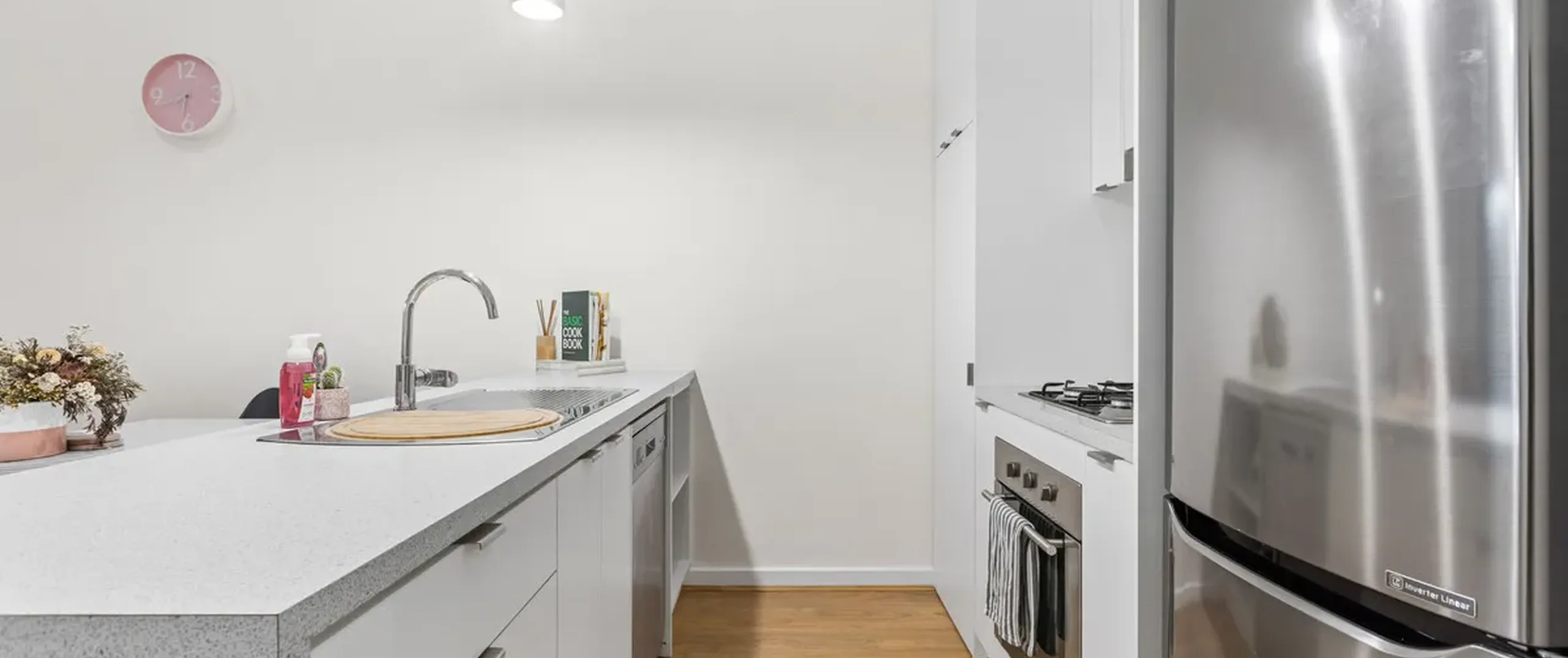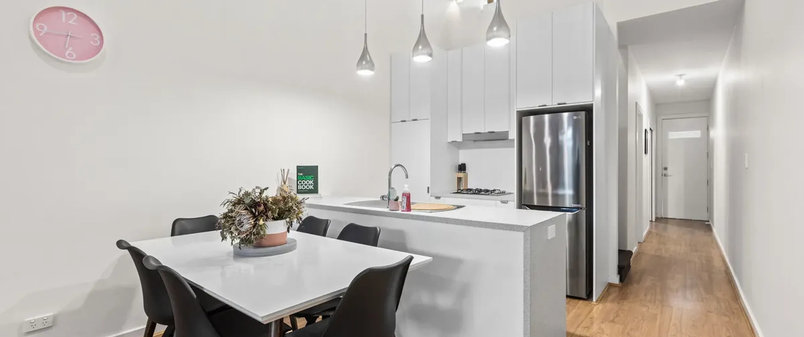 The easy-care and functional floorplan boasts a bright and inviting ambiance throughout. Upon entry, be greeted by modern flooring which leads you through the light-filled living space which is complimented by high lofty ceilings. The sleek kitchen is set in the heart of the layout so the promising chef can always be a part of the action, while the combined living and dining room allows easy access to the peaceful and private outdoor entertainer’s space.