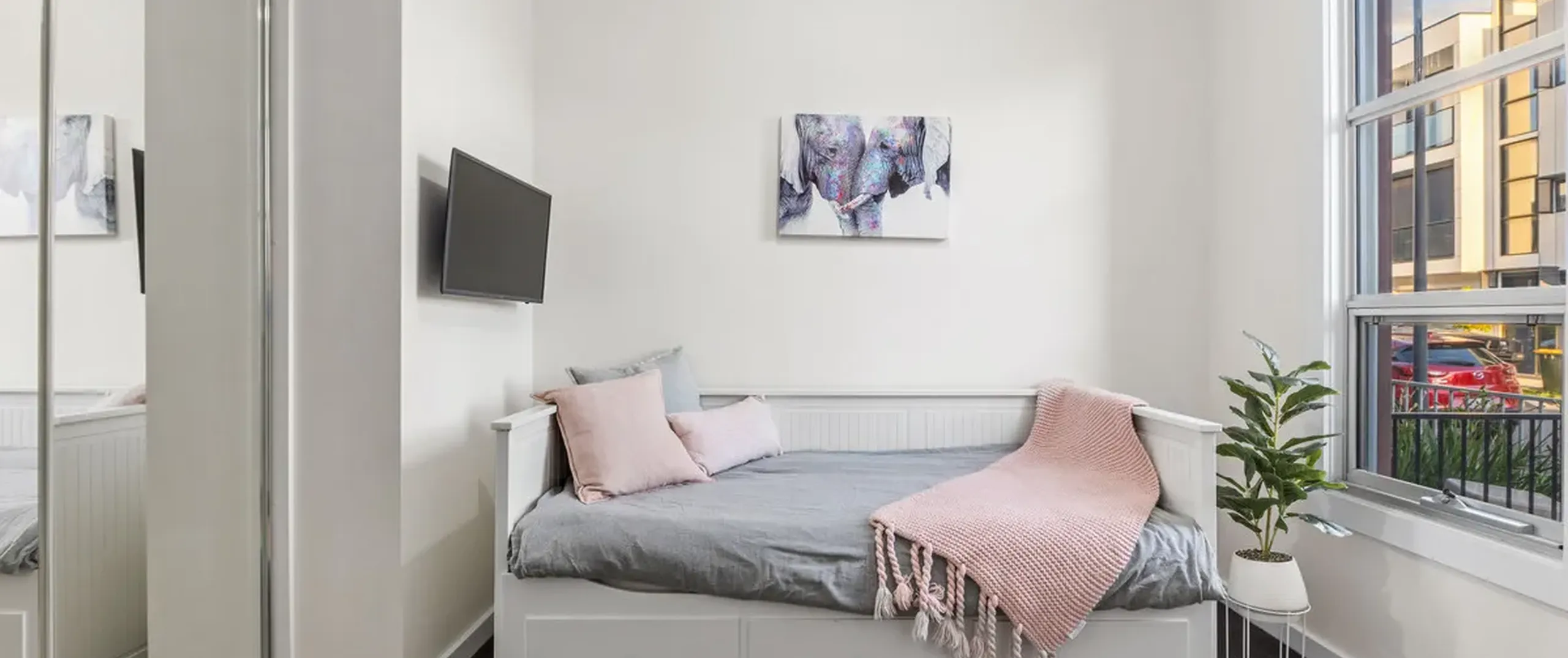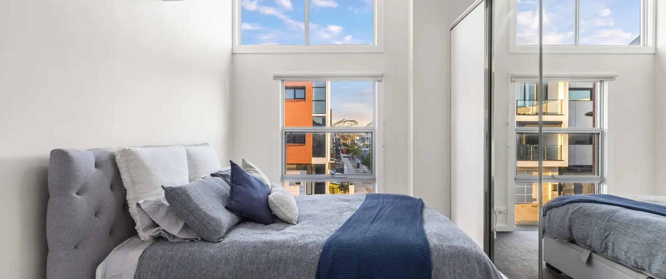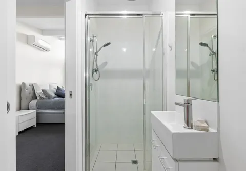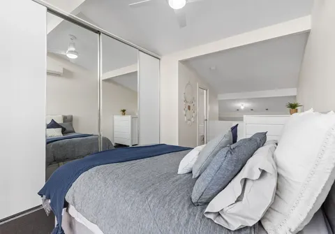 - Large master bedroom on private upper level with split system air-conditioner, built-in robe, ceiling fan and ensuite