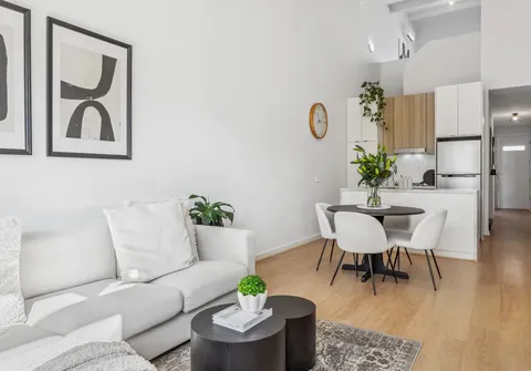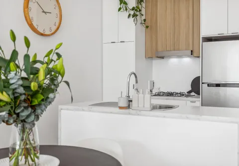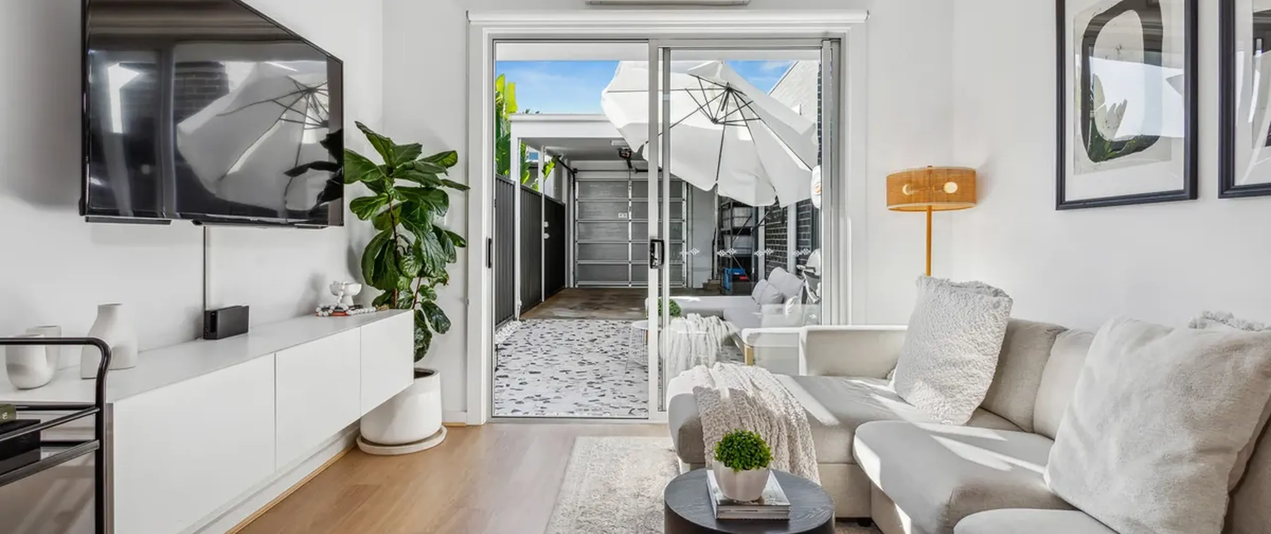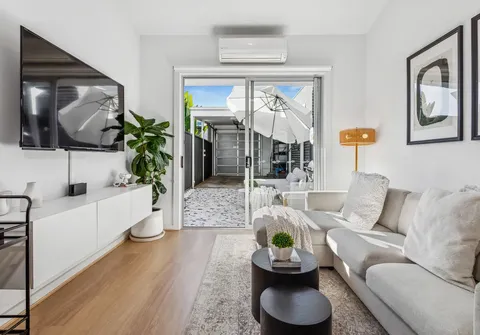 - Open plan sunny kitchen, dining and living space with split system air conditioner