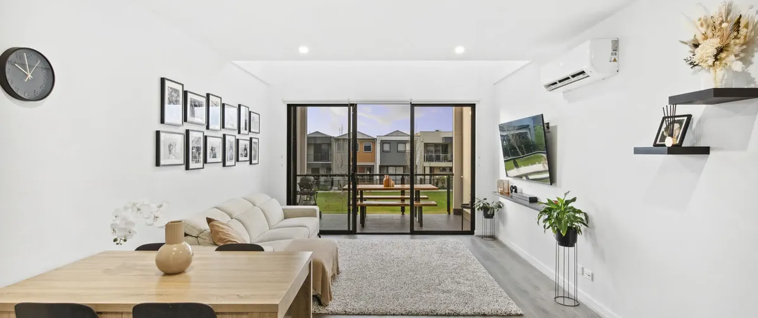 - Light-filled living area, flowing seamlessly through glass sliding doors to the private balcony