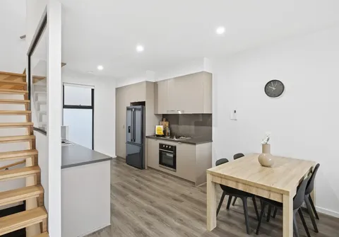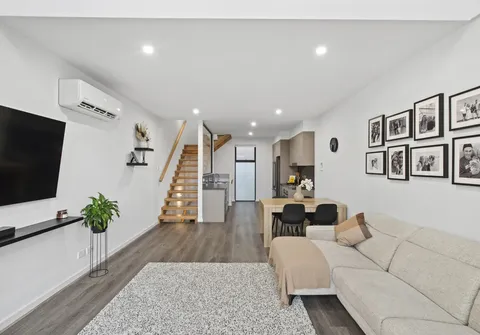 On the lower level, convenience is paramount. A single-car garage with internal access and integrated laundry facilities ensures everyday tasks are effortless. Additionally, the second bedroom offers sliding door access to the courtyard, providing a seamless indoor-outdoor connection. An additional bathroom is conveniently located next to the bedroom.