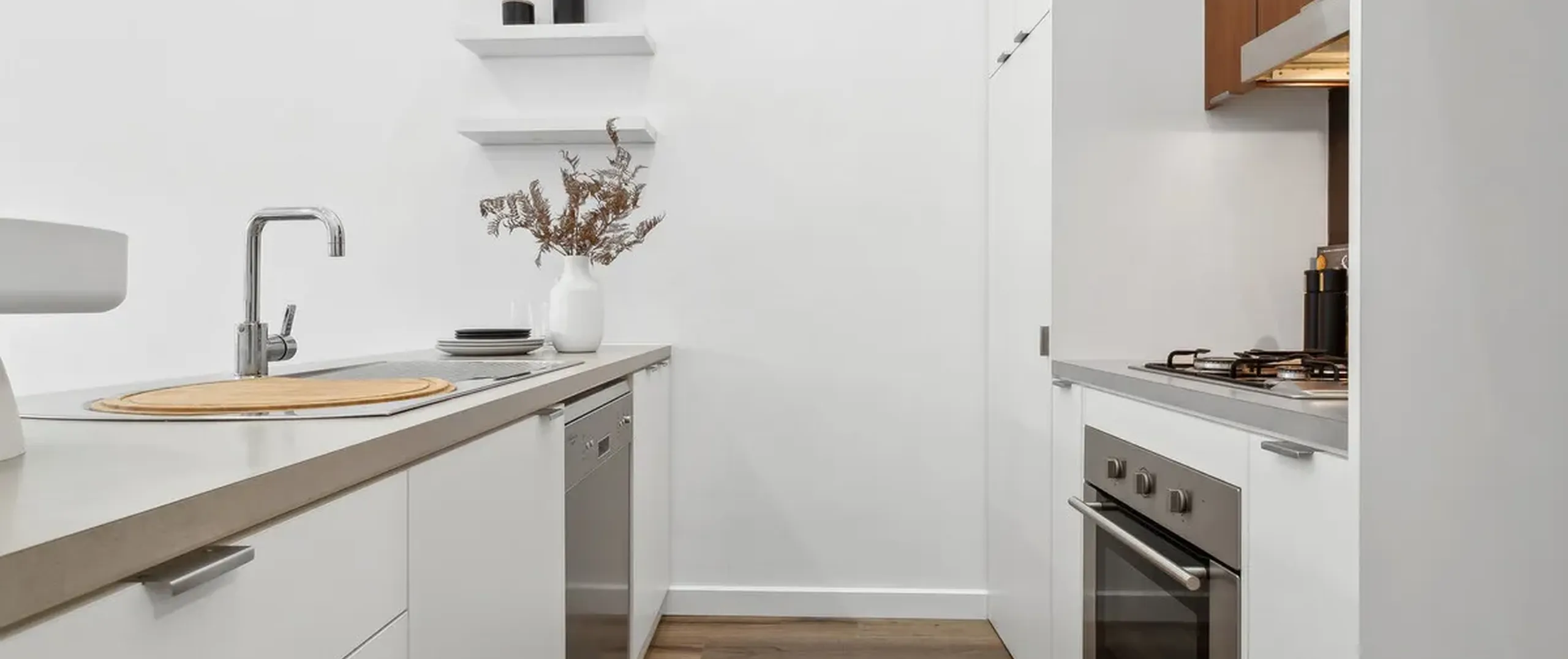 - Modern and stylish kitchen with stainless steel appliances including dishwasher, oven, gas cooktop, ample cupboard space and sweeping benchtops