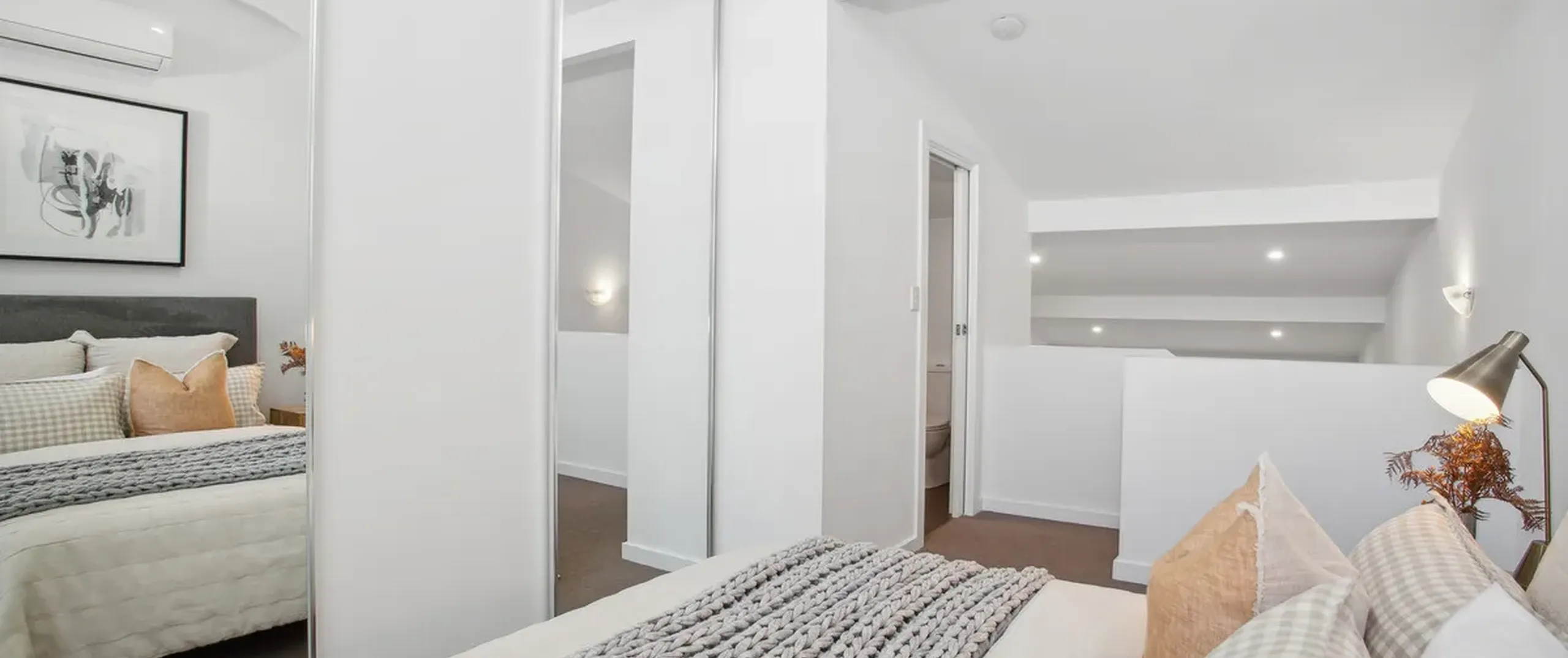 - Light-filled master bedroom on private upper level with split system air-conditioner, built-in robe and ensuite