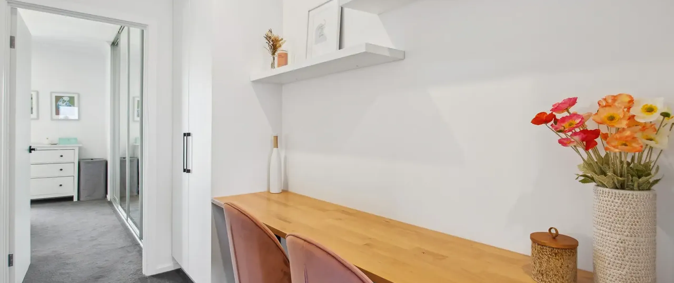 Upstairs, you’ll find two generously sized bedrooms, each boasting its own ensuite for ultimate convenience and privacy. A well-placed study nook provides the ideal space for working from home or tackling your favourite projects.