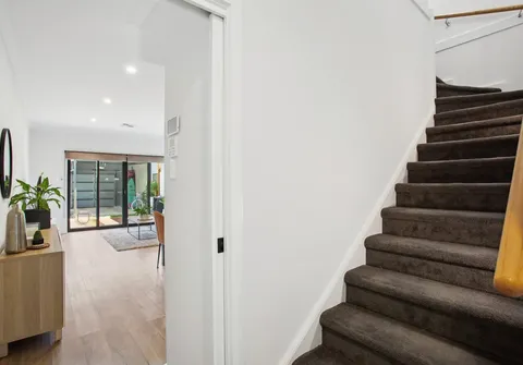 Downstairs, the light-filled living and dining areas create a seamless flow, opening onto an inviting courtyard with a charming verandah—perfect for entertaining or enjoying quiet mornings. The low-maintenance yard allows for more relaxation and less upkeep. An additional lounge room offers versatility as a home office, retreat, or extra living space.