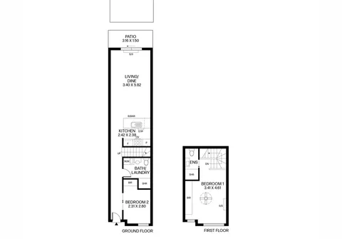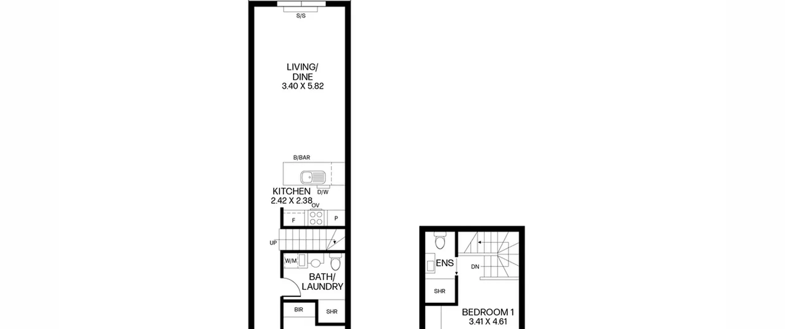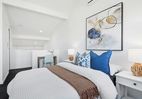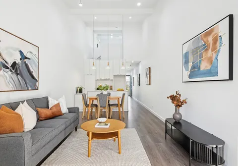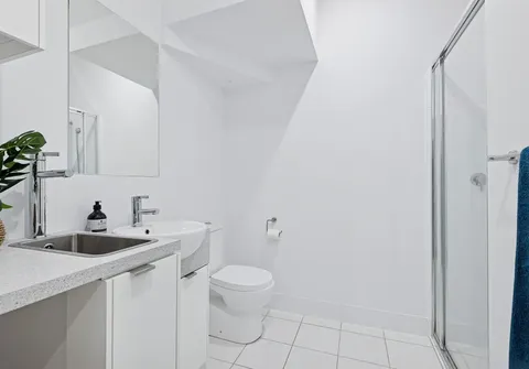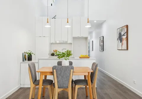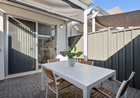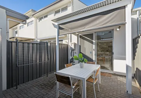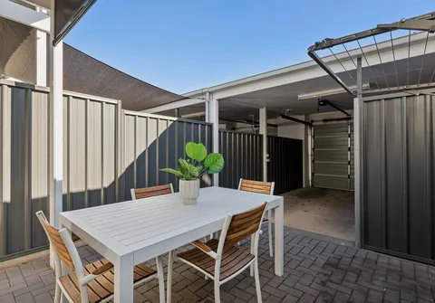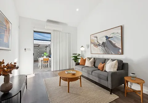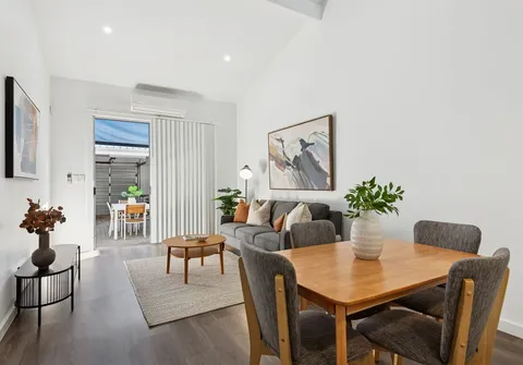 Downstairs you’ll find the second bedroom and modern main bathroom. An open-plan, light-filled kitchen, living and dining area boasts soaring high ceilings and flows effortlessly into a welcoming courtyard with a patio - ideal for entertaining guests or savouring peaceful mornings. The low-maintenance yard ensures you’ll have more time to unwind and spend less time on upkeep.