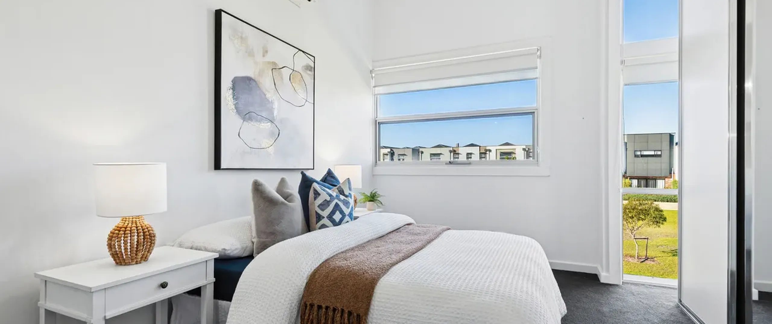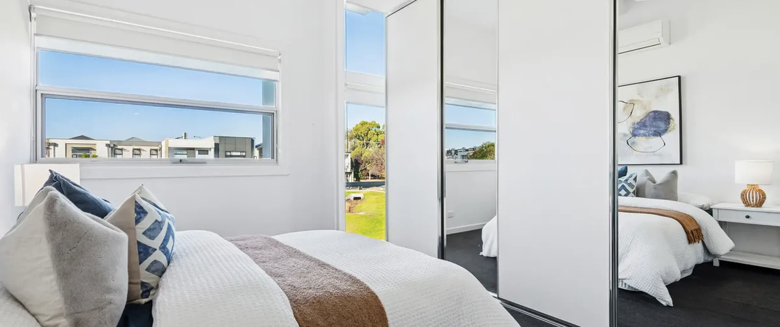 Upstairs, the spacious master bedroom features a private ensuite and built-in robe, offering a peaceful retreat with a picturesque outlook over Patta Avenue Playground.
