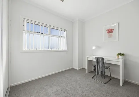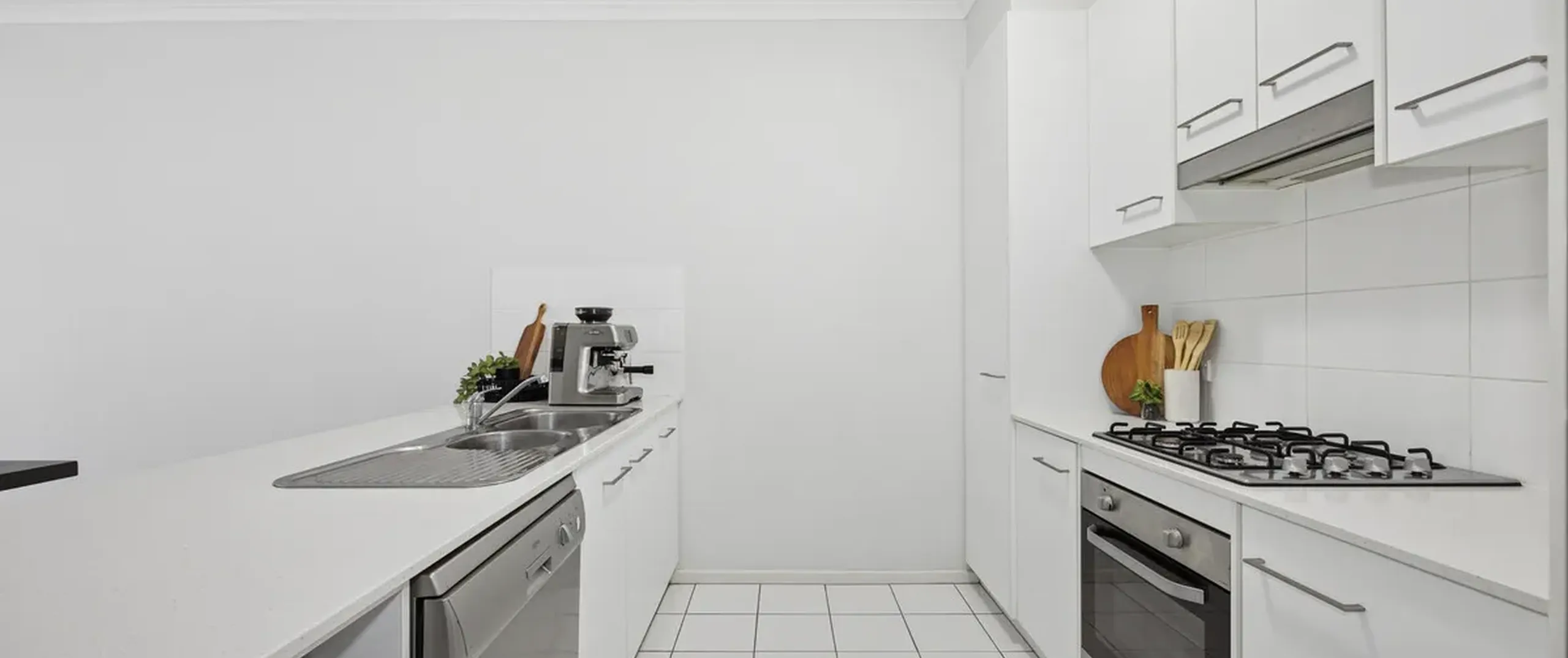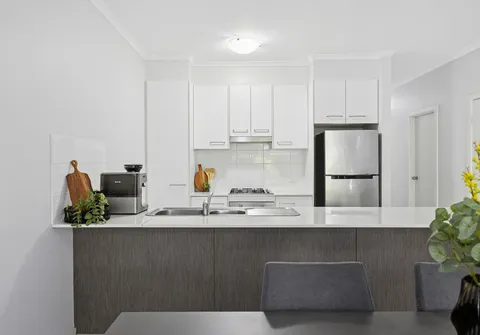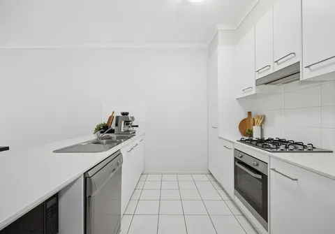 The central kitchen is both stylish and functional, with stone benchtops, gas cooktop, dishwasher, breakfast bar and ample storage. High ceilings, soft neutral tones and a bright, airy feel create a welcoming atmosphere from the moment you step inside.