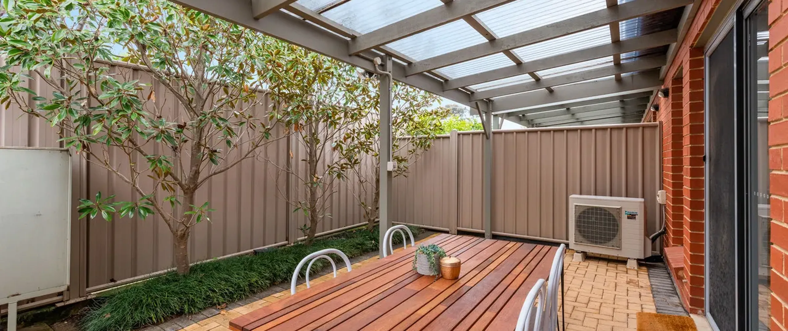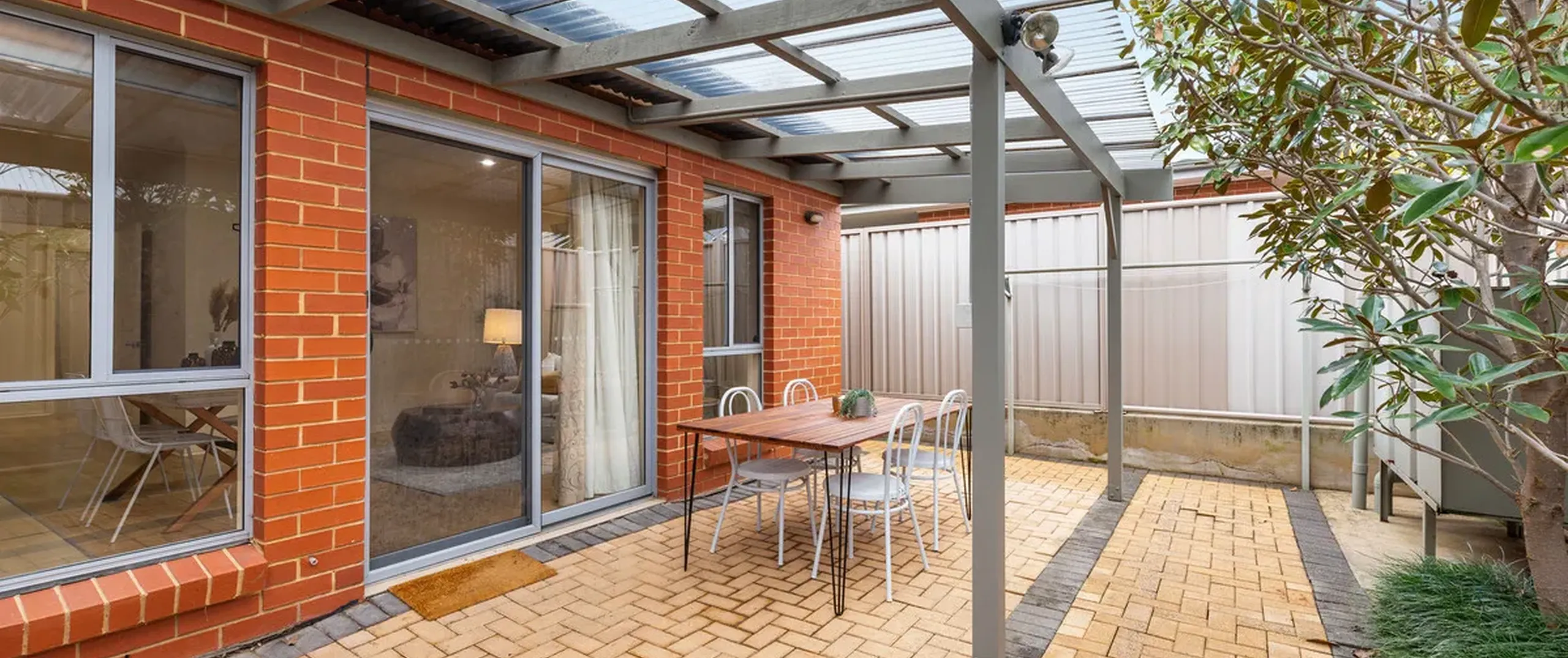 - Low-maintenance, paved outdoor area with pergola