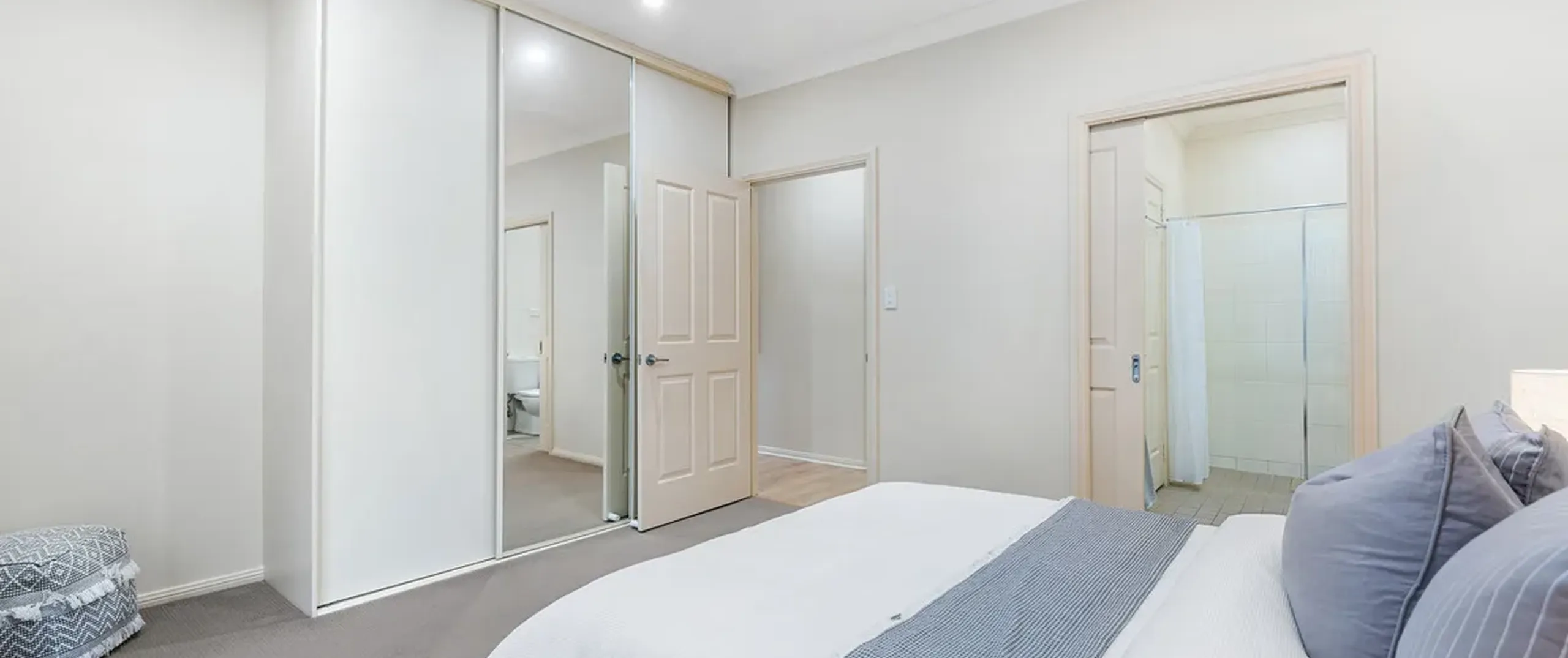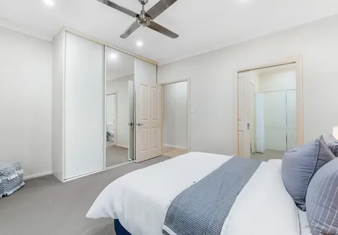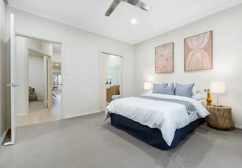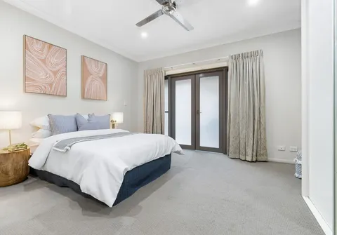 - Spacious master bedroom with built-in robe, ceiling fan, direct access to the main bathroom and double doors allowing direct external access