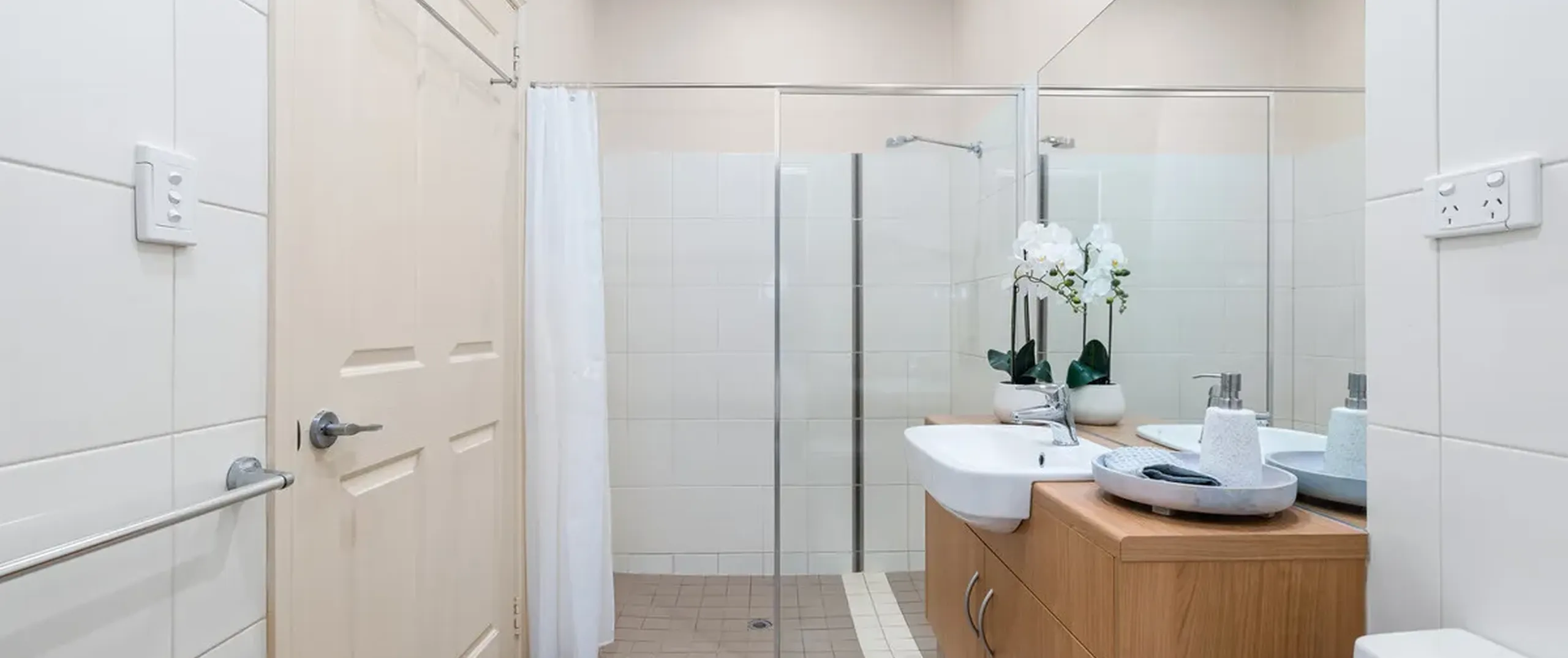 - Neutral main bathroom with oversized shower and toilet