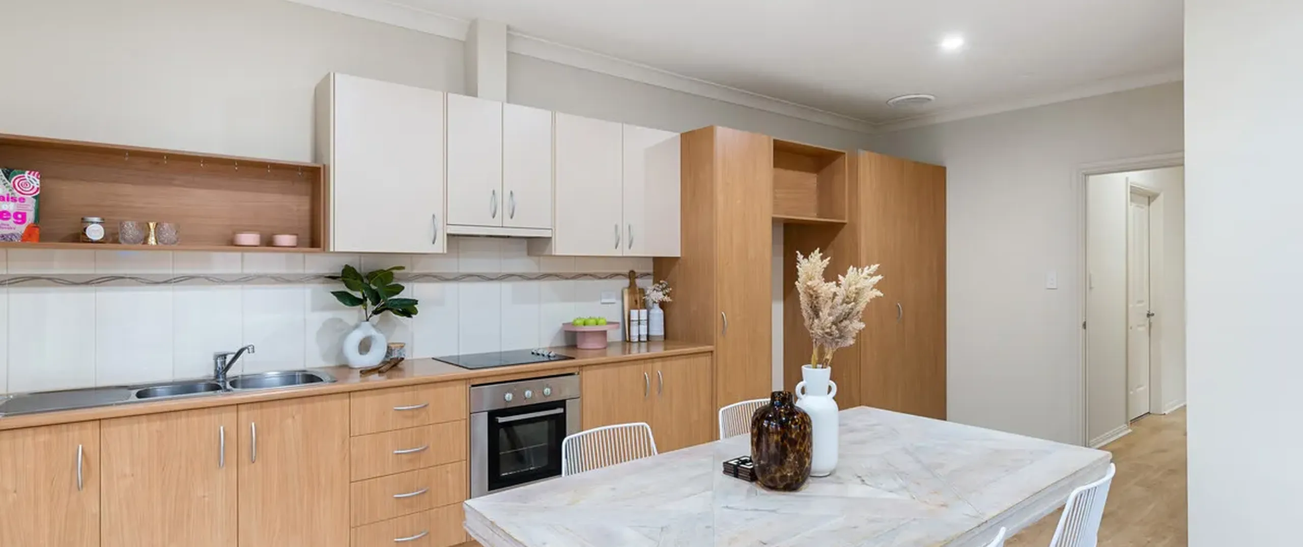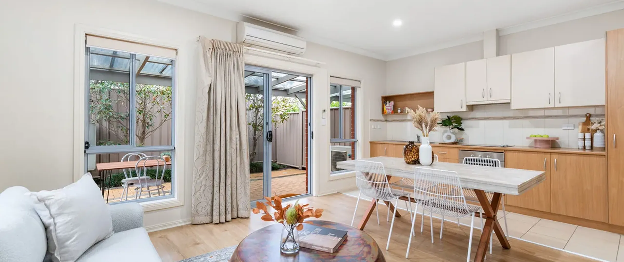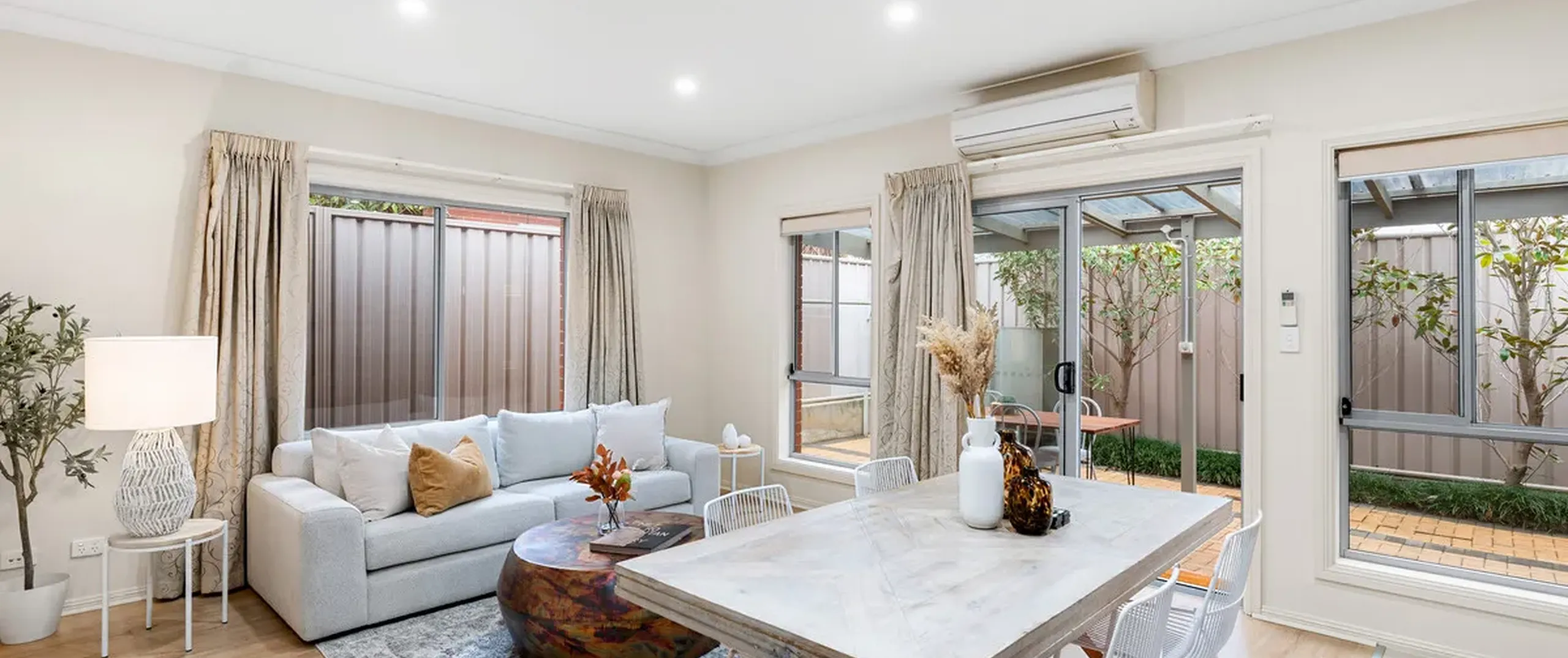 - Light-filled and open plan living and meals area complete with LED downlights