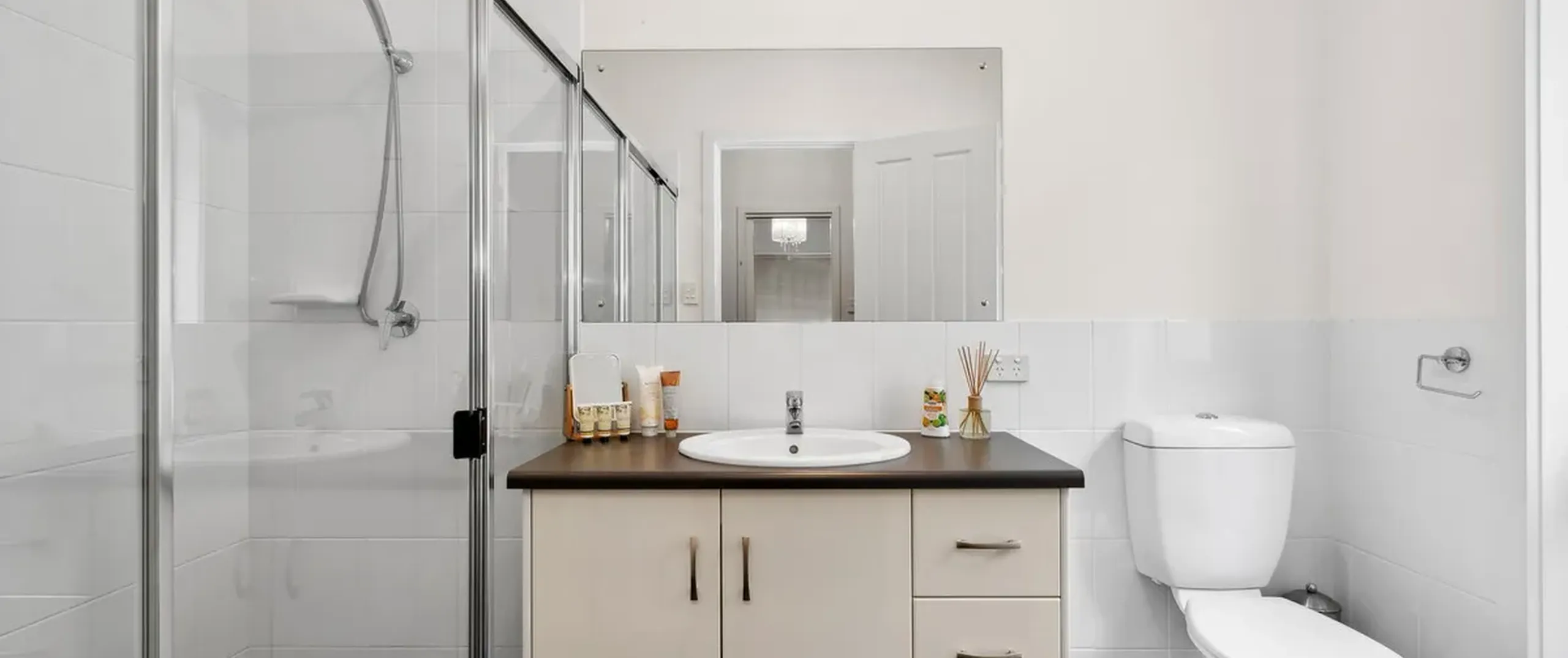 - Sparkling three-way bathroom with bath and shower