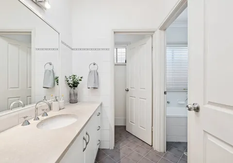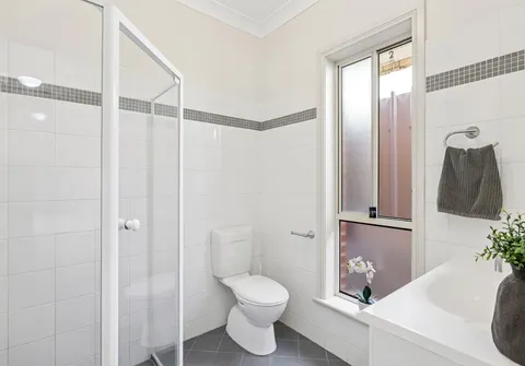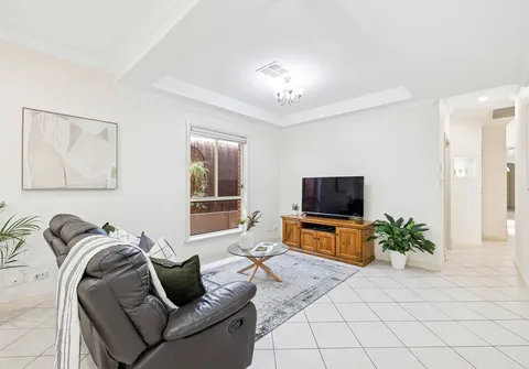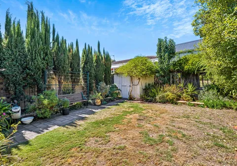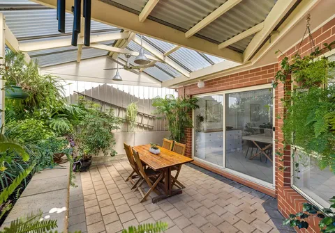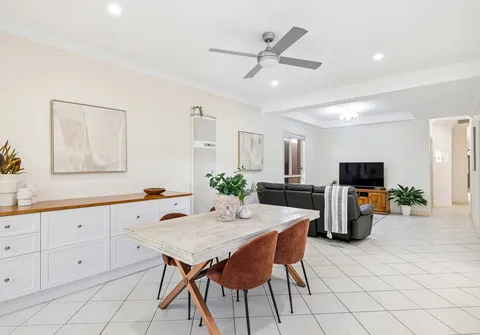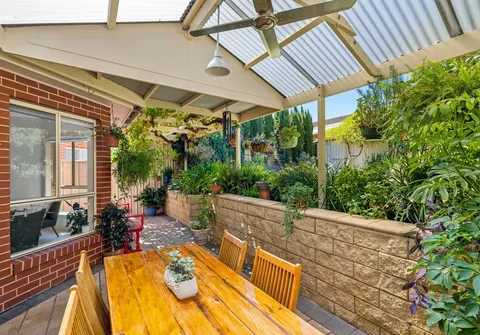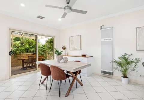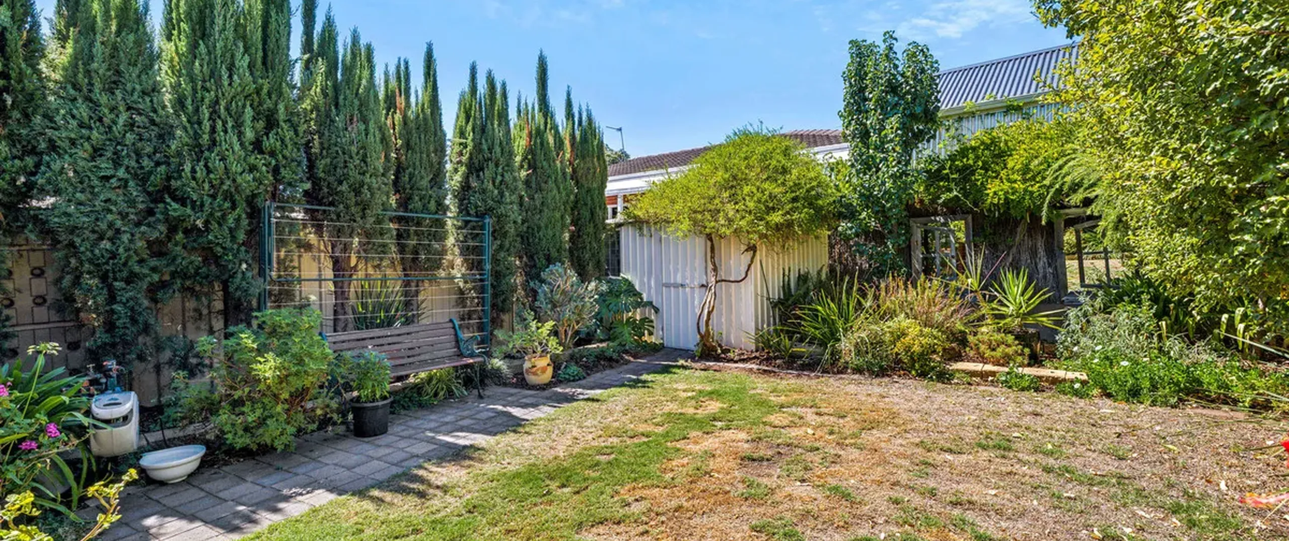 Outdoors, a paved rear pergola provides the perfect setting for alfresco dining, morning coffee, or relaxed gatherings with family and friends. A side verandah with a ceiling fan offers an additional space for relaxation. The backyard also presents plenty of potential for garden lovers to create their own private retreat.