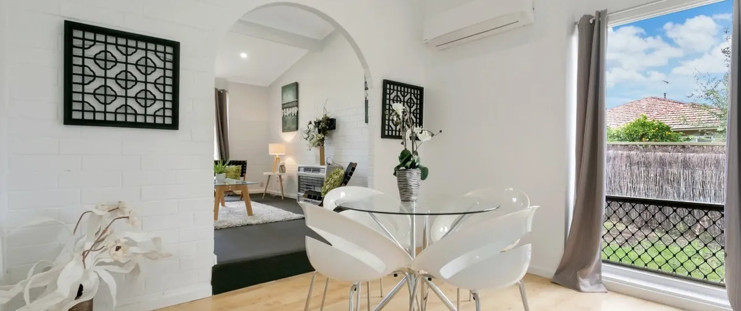 - Dining room adjacent kitchen with split system air conditioner