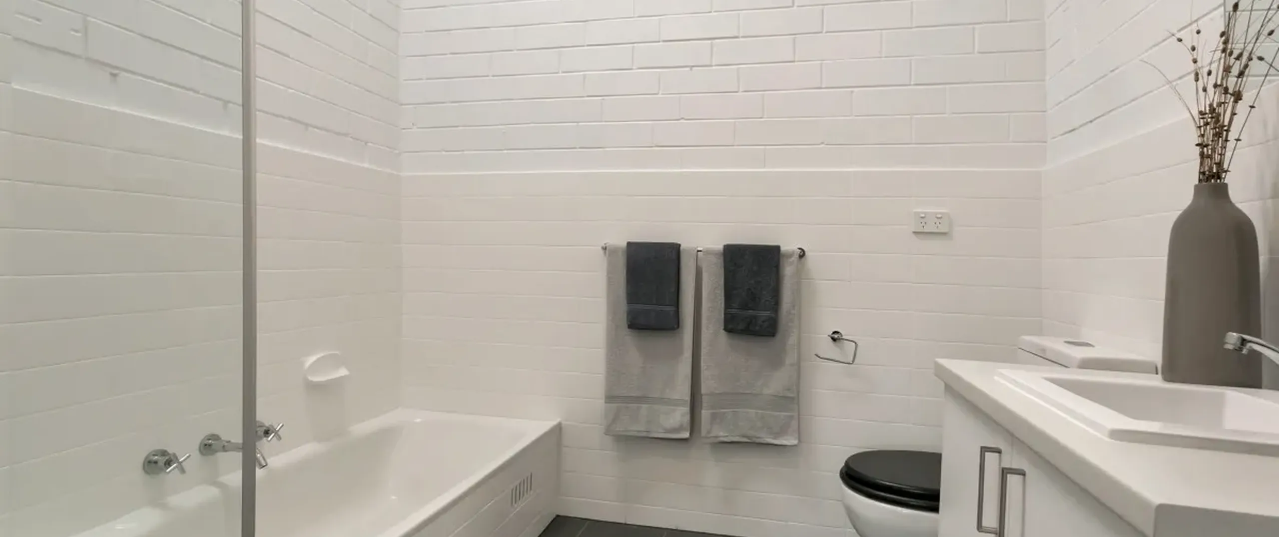- Modern bathroom with separate bath and shower