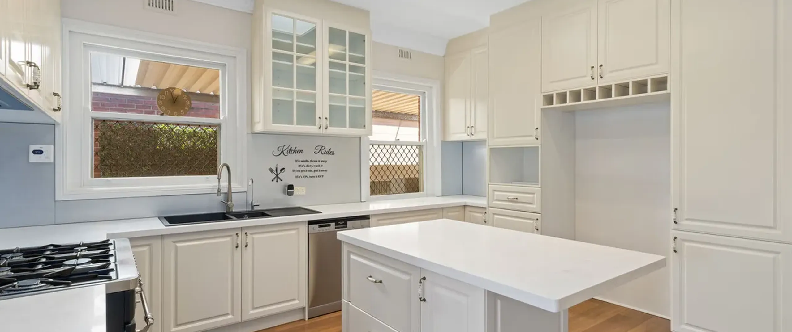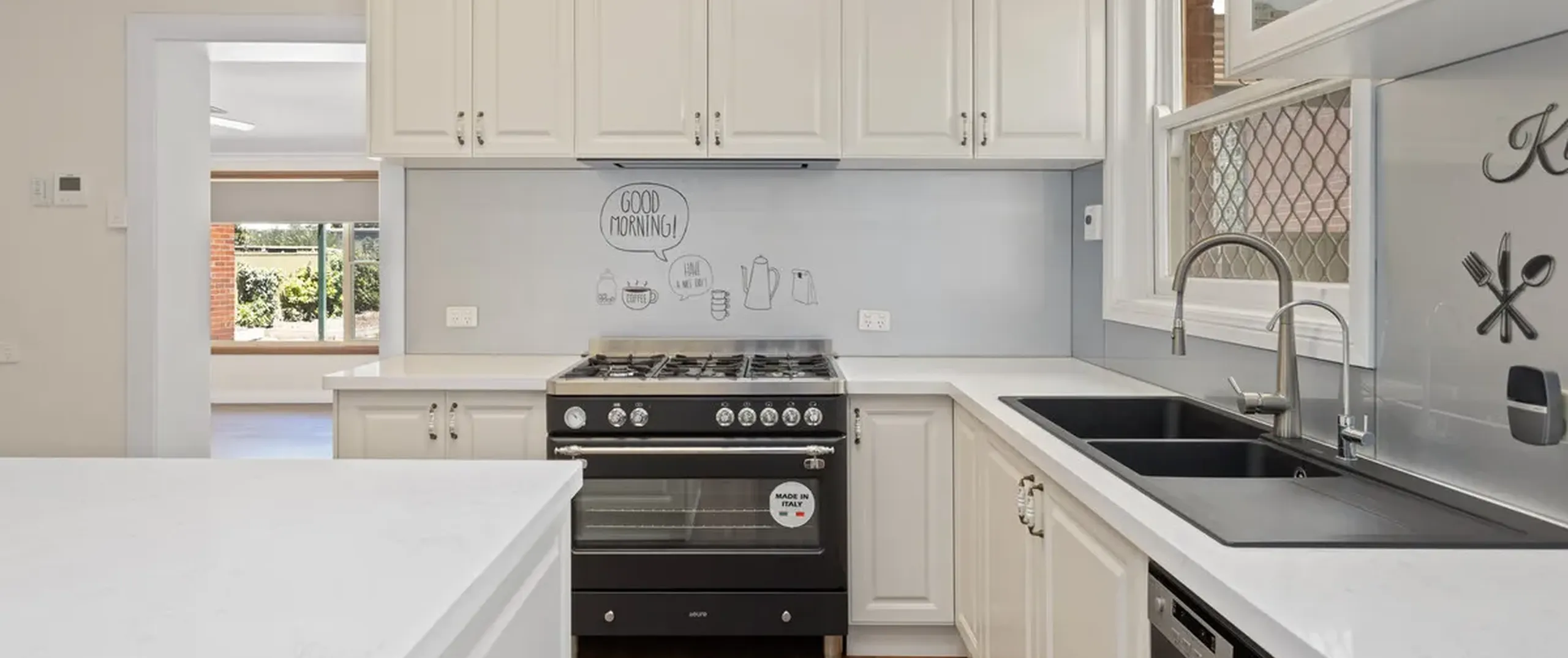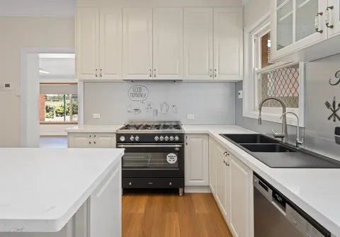 - Stylish fully renovated kitchen with freestanding gas cooktop/oven, dishwasher and island bench