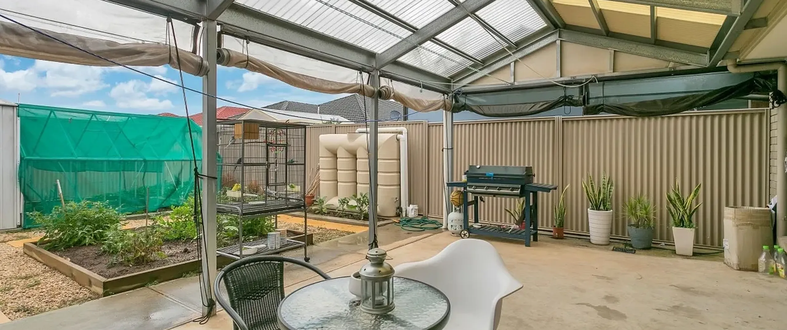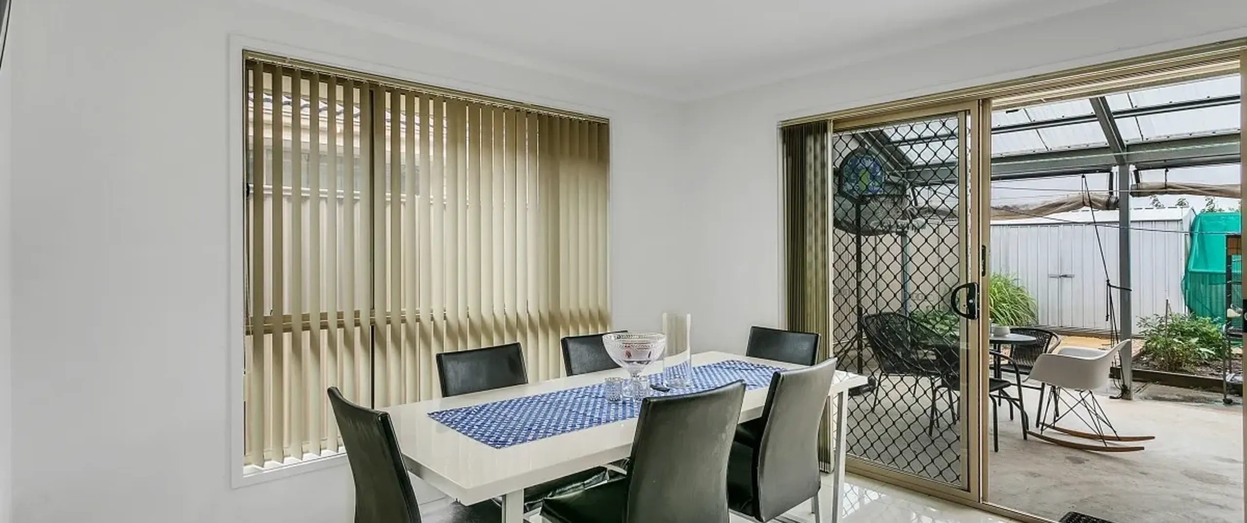 - Pitched rod verandah with café blinds, ideal for outdoor entertaining