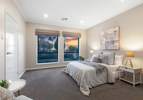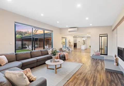 Your chic chef’s kitchen boasts an island bench and a huge butler’s pantry incorporating the laundry along with views over the light-filled meals and formal dining area. The open-plan lounge room is warmed by a gas fireplace and there are banks of sliding glass doors that draw you out to the entertaining areas with views over the low maintenance backyard.